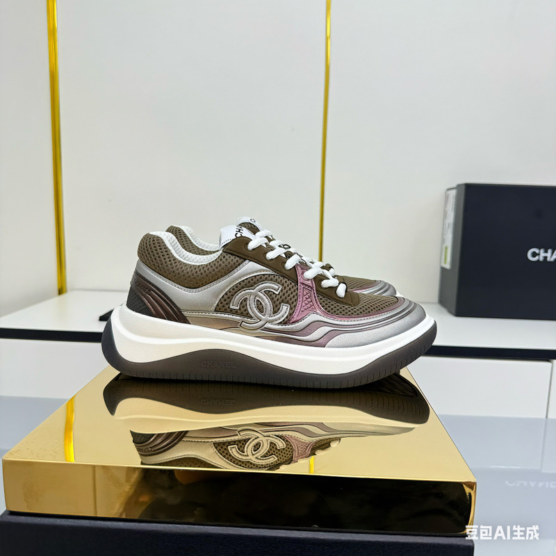 Chanel Gradient Mesh Sneakers In Taupe/Pink