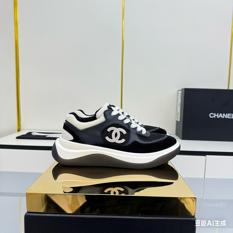 Chanel Color-Block & Webbing Accent Sneakers In Pink/Black/White