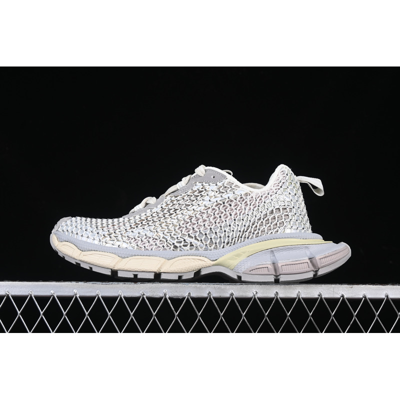 Balenciaga 3XL Crystal Mesh Sneaker In Silver Monochrome