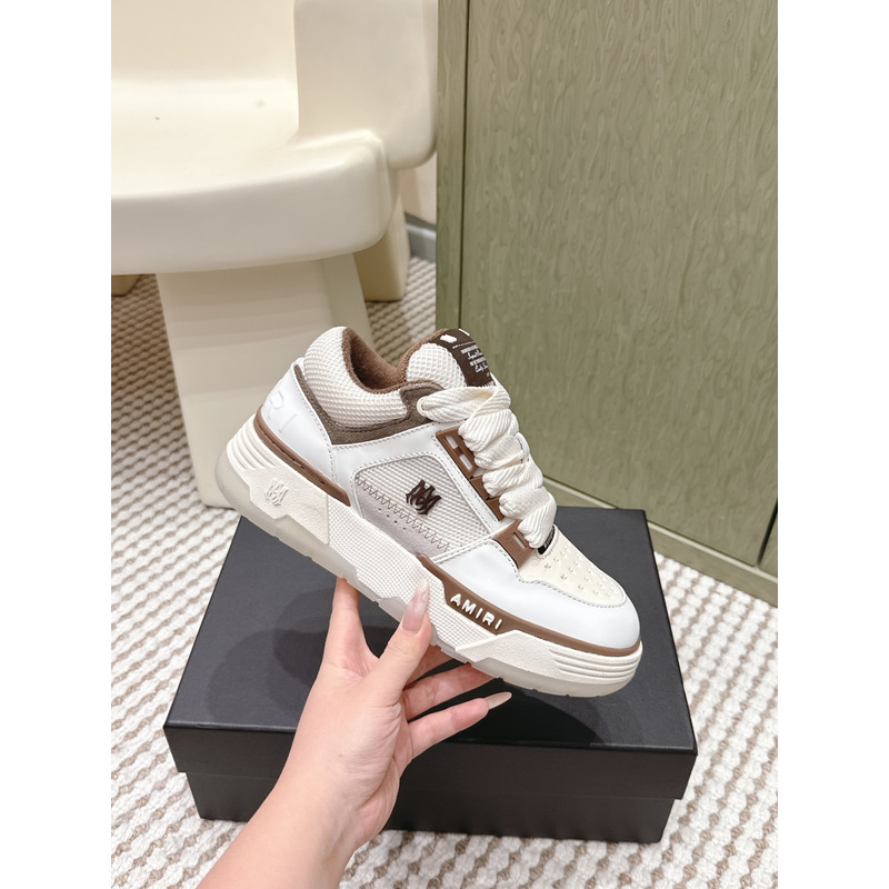 Amiri MA-1 Mesh & Leather Sneakers In White & Chamoisee Brown