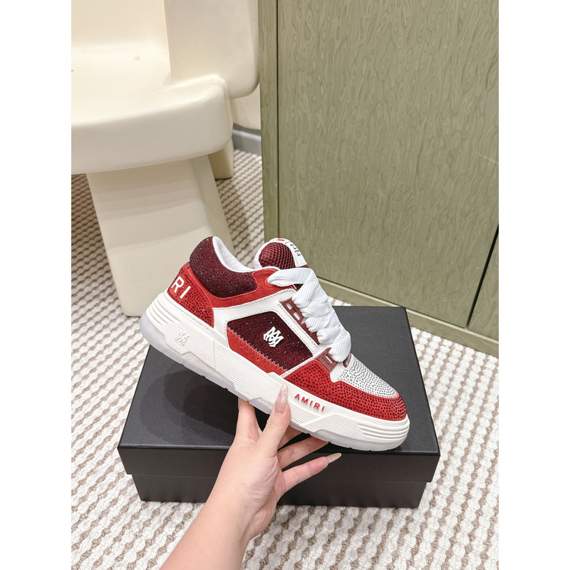 Amiri MA-1 Crystal Leather Sneakers In White & Bright Red