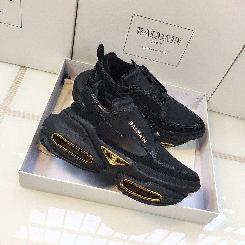 Balmain B-Box Air Sneakers In Black & Gold-Tone Leather