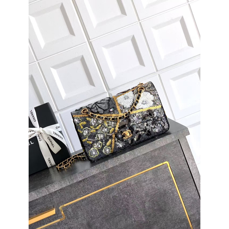 Chanel Embellished Mesh Flap Bag With Chain Strap In Black Multi-Embellished