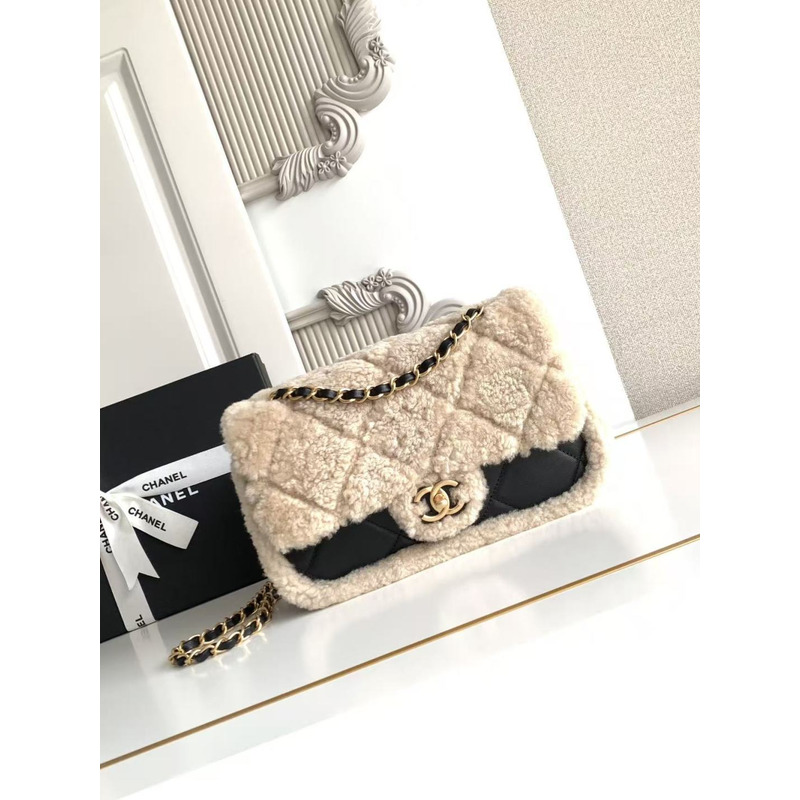 Chanel Teddy Bear Flap Bag Small Fur And Leather In Beige And Black