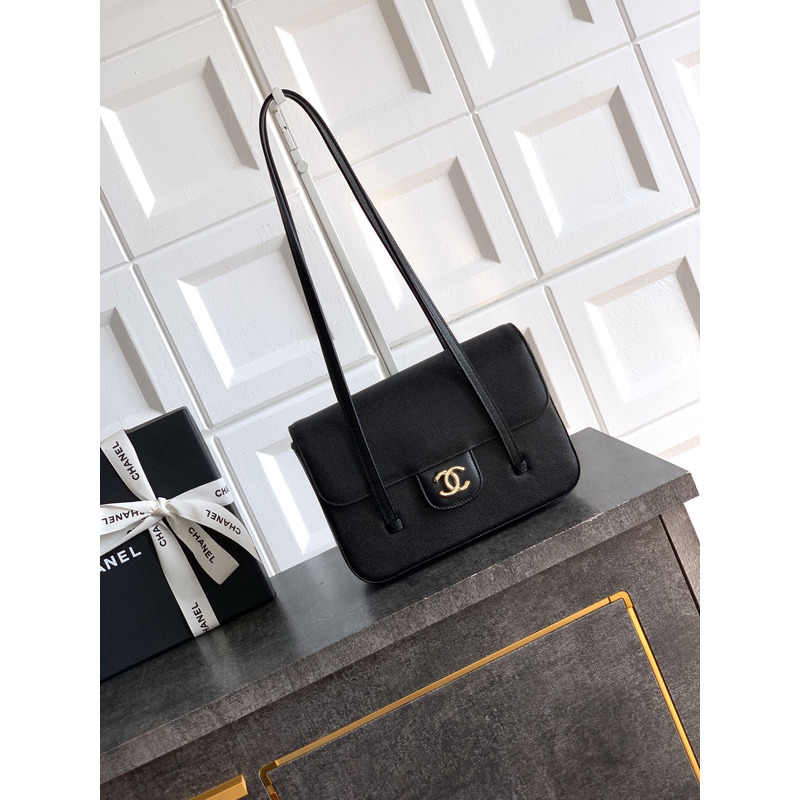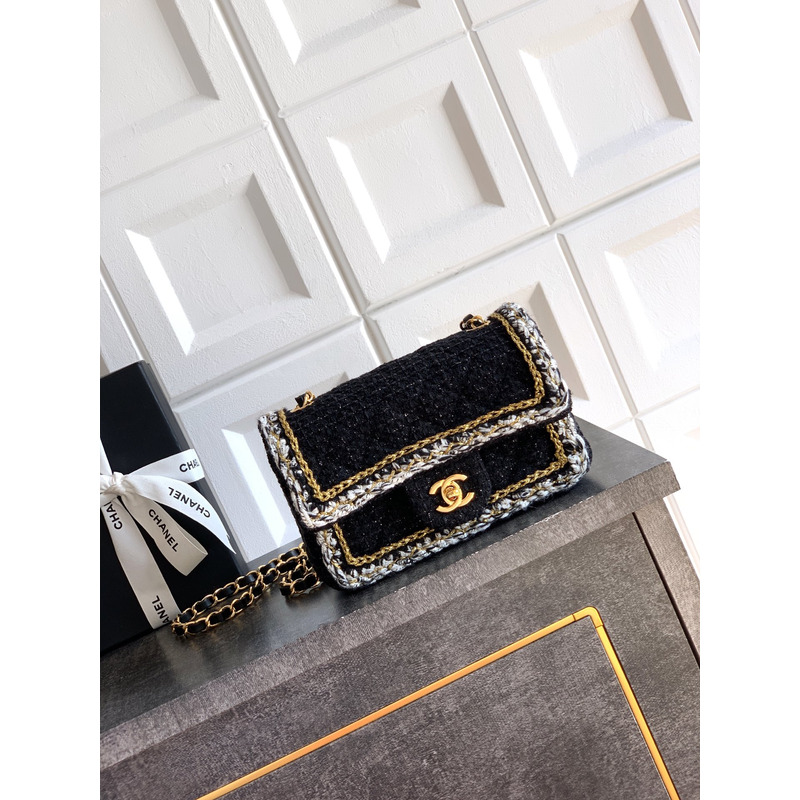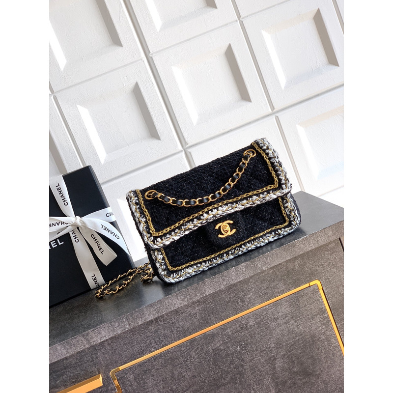 Chanel Tweed Flap Bag With Contrast Trim & Chain Strap In Black Multi