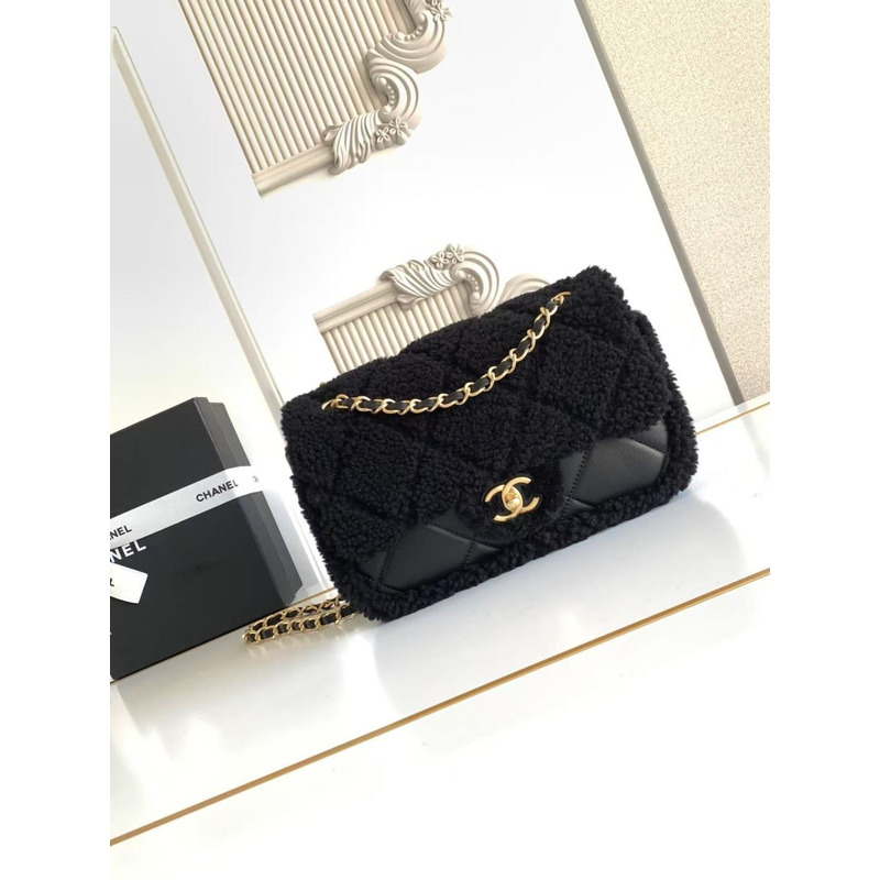 Chanel Teddy Bear Flap Bag Small Fur And Leather Black Bag