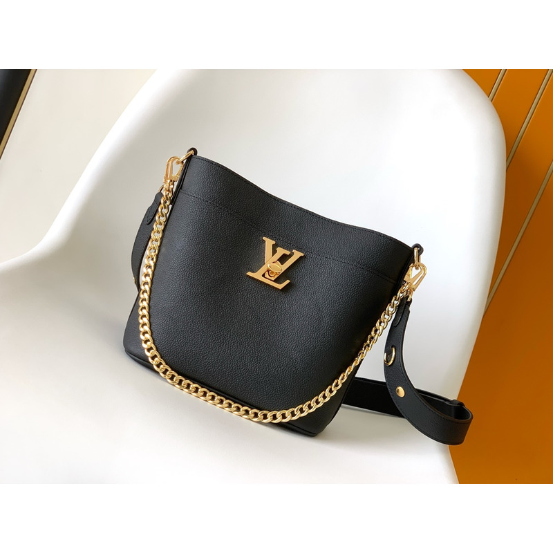 Louis Vuitton Lock and Walk Bag Grained Calf Leather In Black