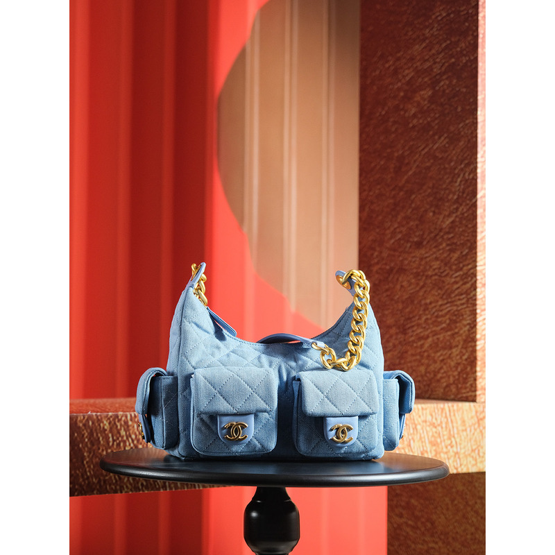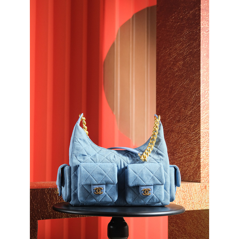 Chanel Large Hobo Bag 24K Gold-Tone Metal Denim Blue