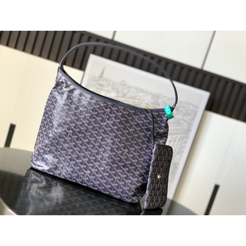 Goyard Bohème Hobo Bag Goyardine Canvas & Chevroches Calfskin Navy Blue