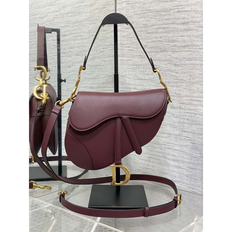 Dior Saddle Bag with Strap Plum Grained Calfskin Dark Red