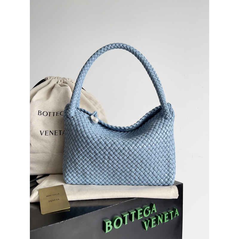 Bottega Veneta Intreccio Leather Shoulder Bag In Light Blue