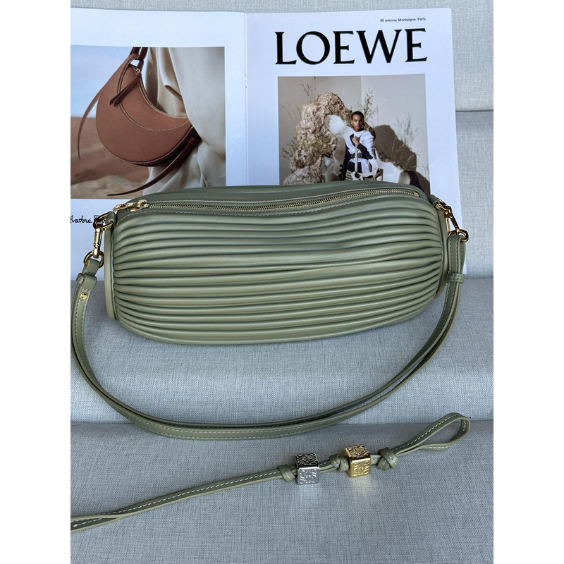 Loewe Bracelet Pouch In Pleated Nappa Lambskin Olive Green