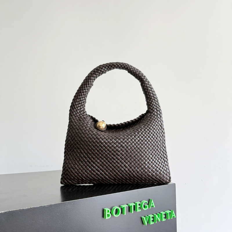 Bottega Veneta Tosca Baci Intreccio Leather Hobo Shoulder Bag Dark Brown