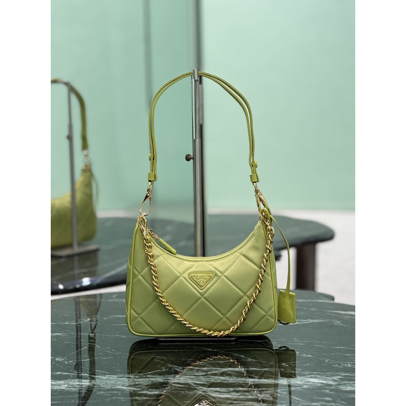Prada Light Green Quilted Hobo Bag With Gold Chain