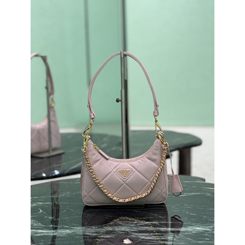 Prada Light Pink Quilted Hobo Bag With Gold Chain