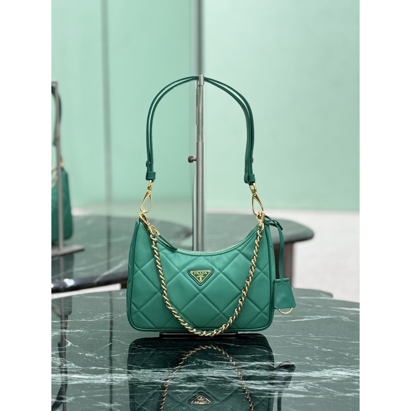 Prada Emerald Green Quilted Hobo Bag With Gold Chain