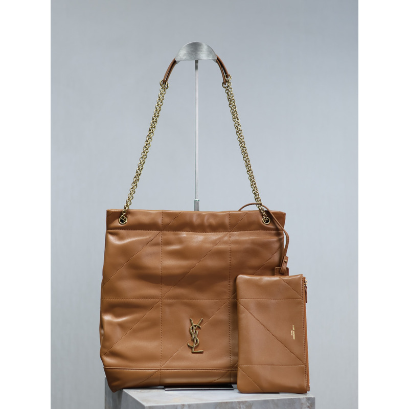 Saint Laurent Brown Quilted Leather Tote Bag With Pouch And Gold Chain