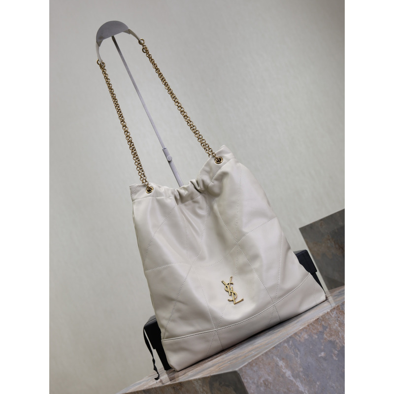 Saint Laurent Jamie Large Pochon In Lambskin Blanc Vintage