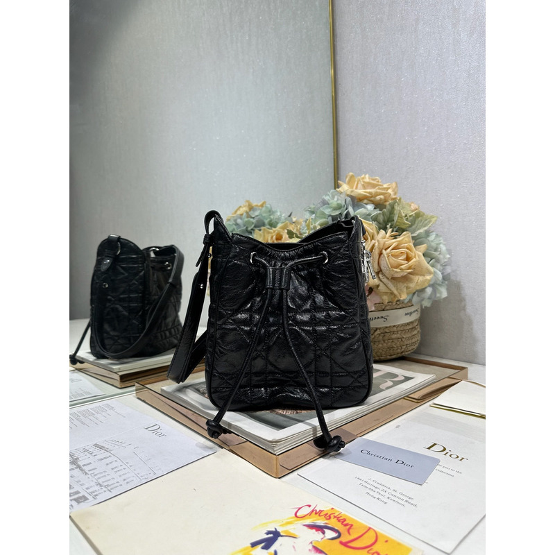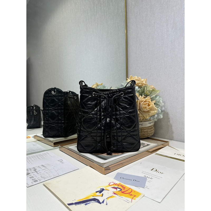 Dior Medium D-Motion Bag Black Macrocannage Crinkled Calfskin