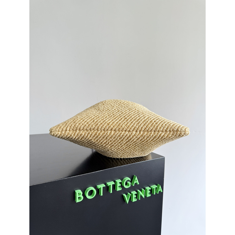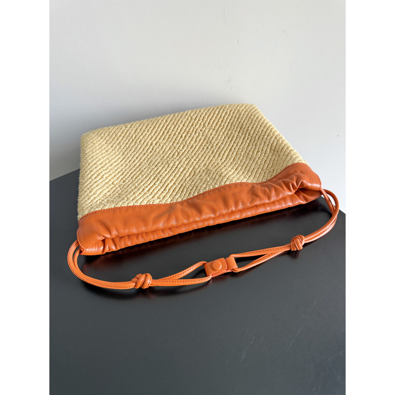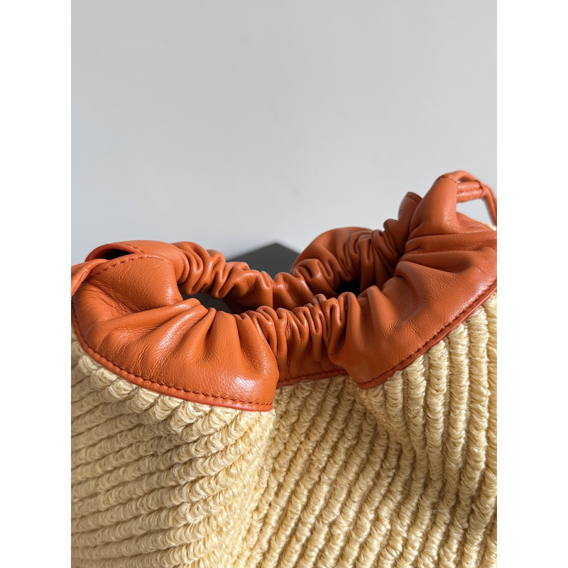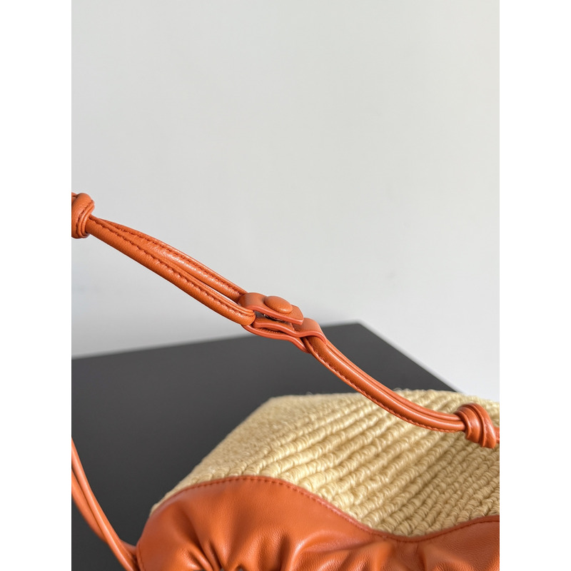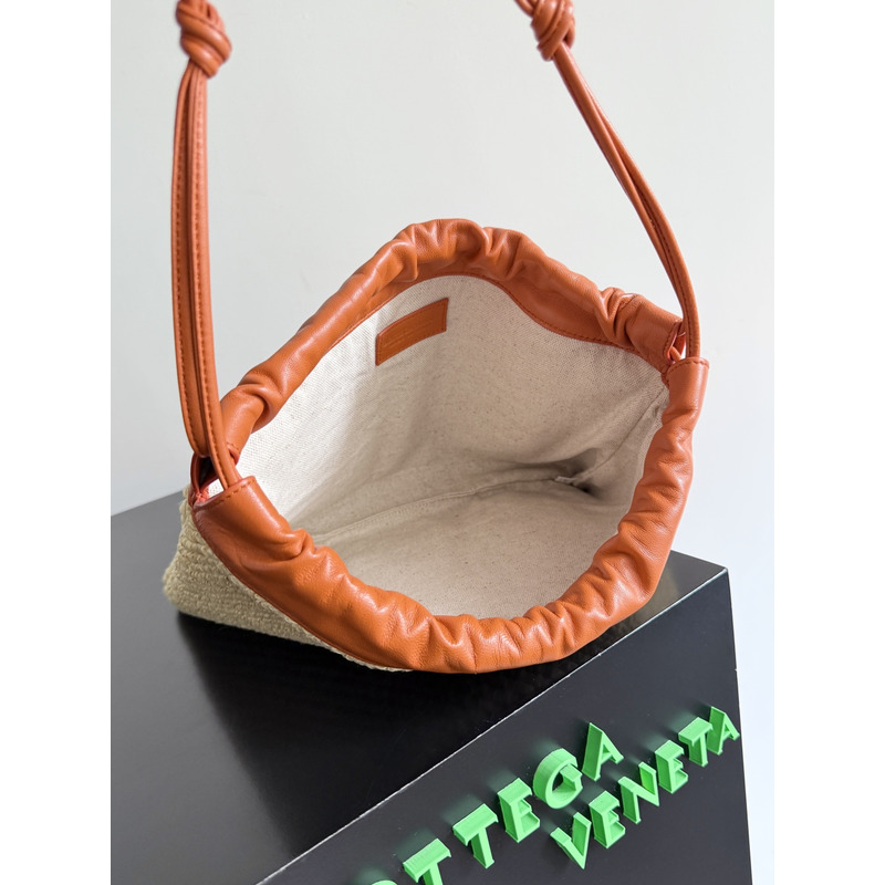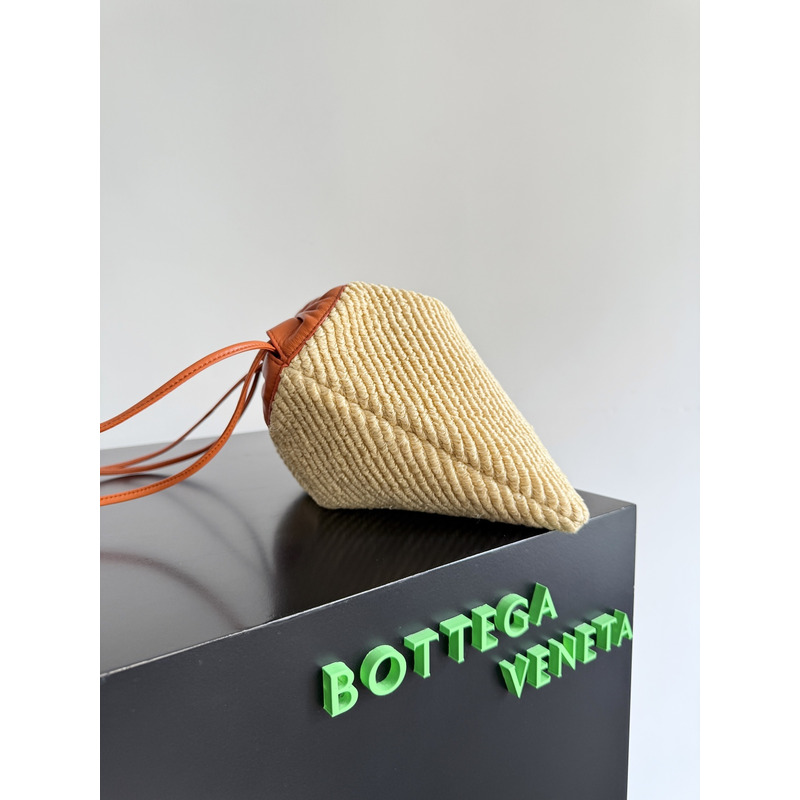 Bottega Veneta Beige Straw And Brown Leather Drawstring Shoulder Bag