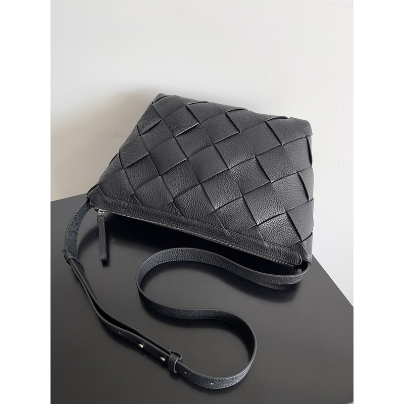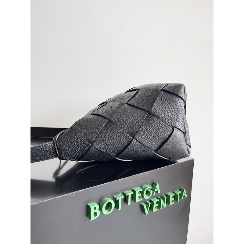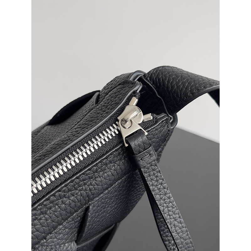 Bottega Veneta Diago Hobo Bag Grained Intreccio Leather Black