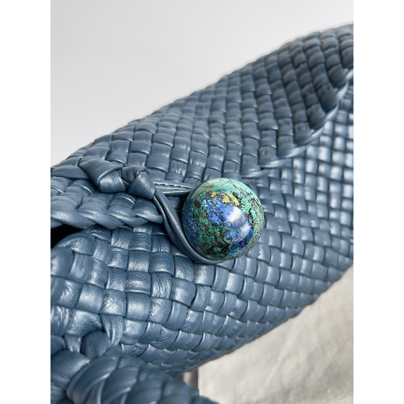 Bottega Veneta Intreccio Leather Shoulder Bag In Dark Blue