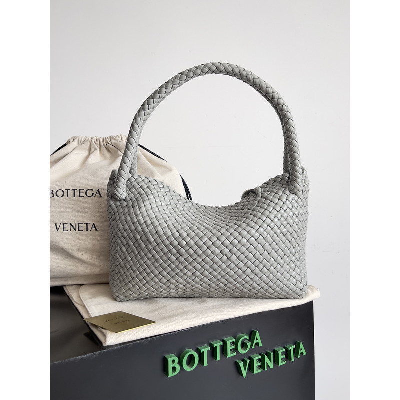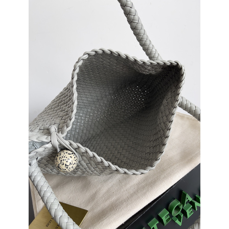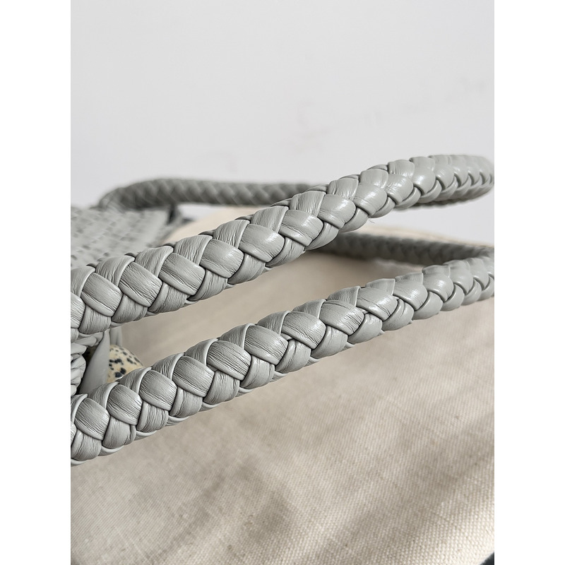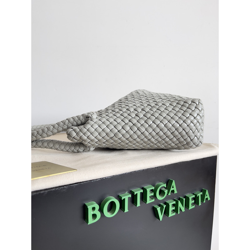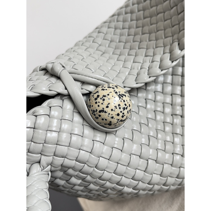 Bottega Veneta Intreccio Leather Shoulder Bag In Light Grey
