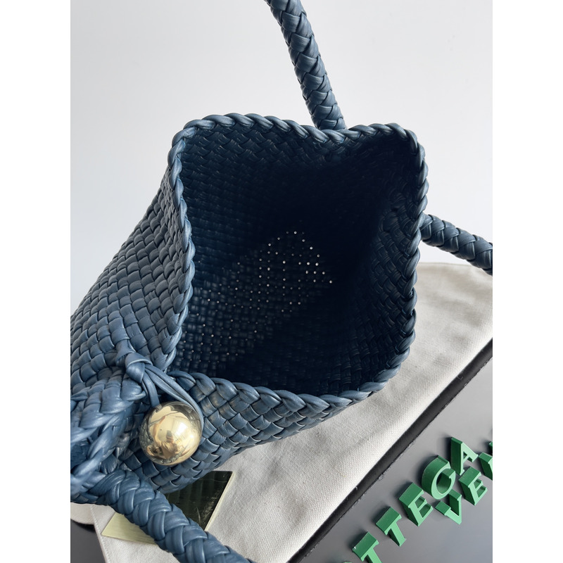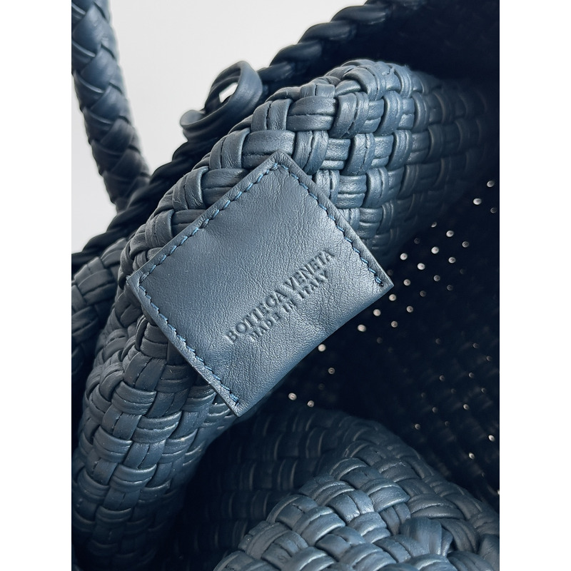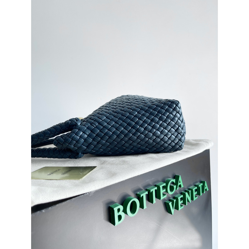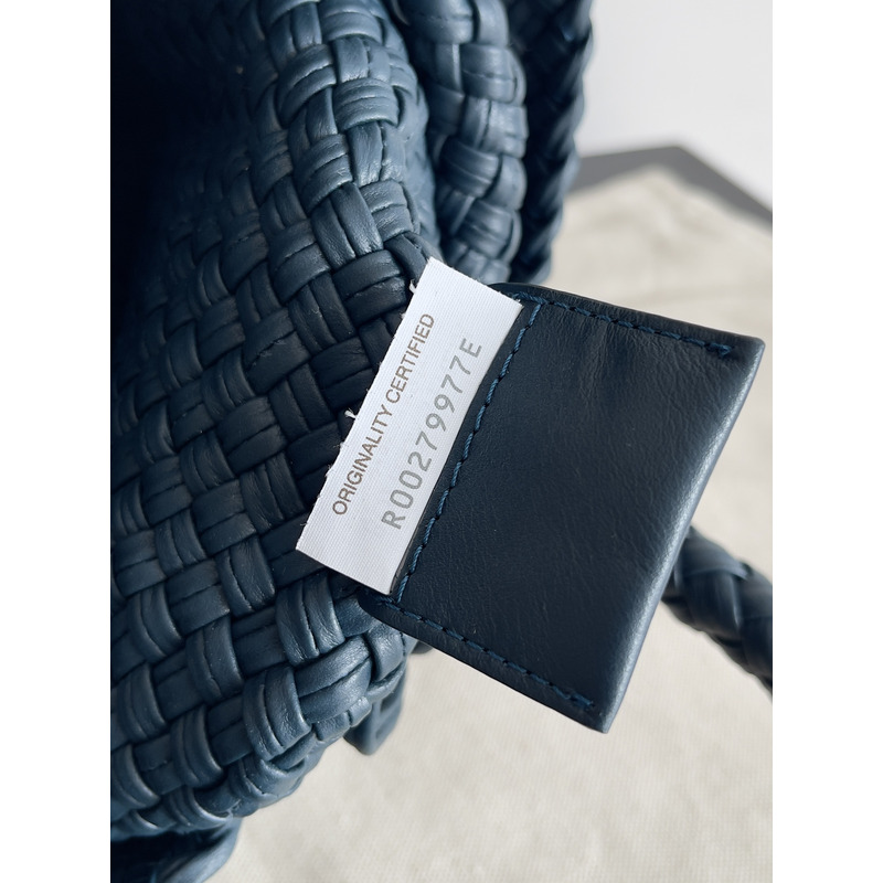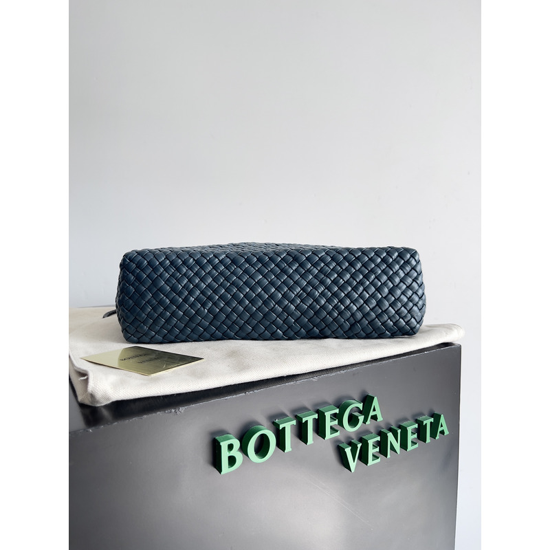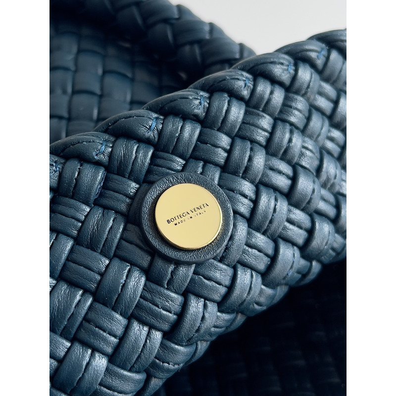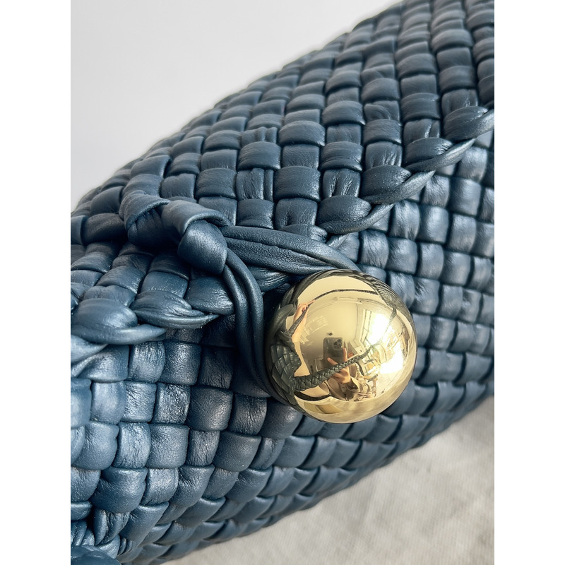 Bottega Veneta Intreccio Leather Shoulder Bag In Navy Blue