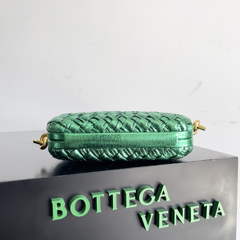 Bottega Veneta Knot Bag With Strap In Metallic Green