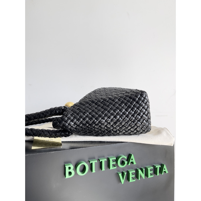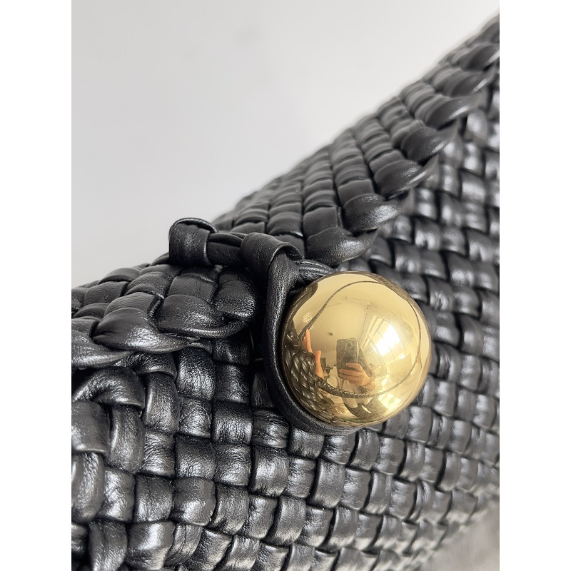 Bottega Veneta Shoulder Bag In Intreccio Leather With Sculptural Sphere Detail Black