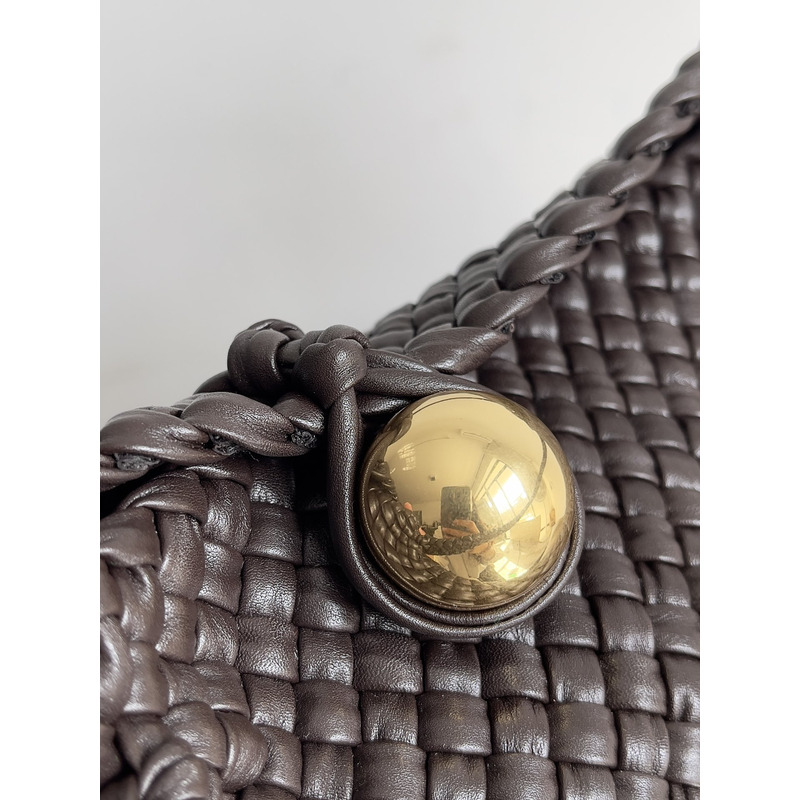 Bottega Veneta Shoulder Bag In Intreccio Leather With Sculptural Sphere Detail Black