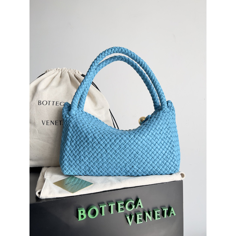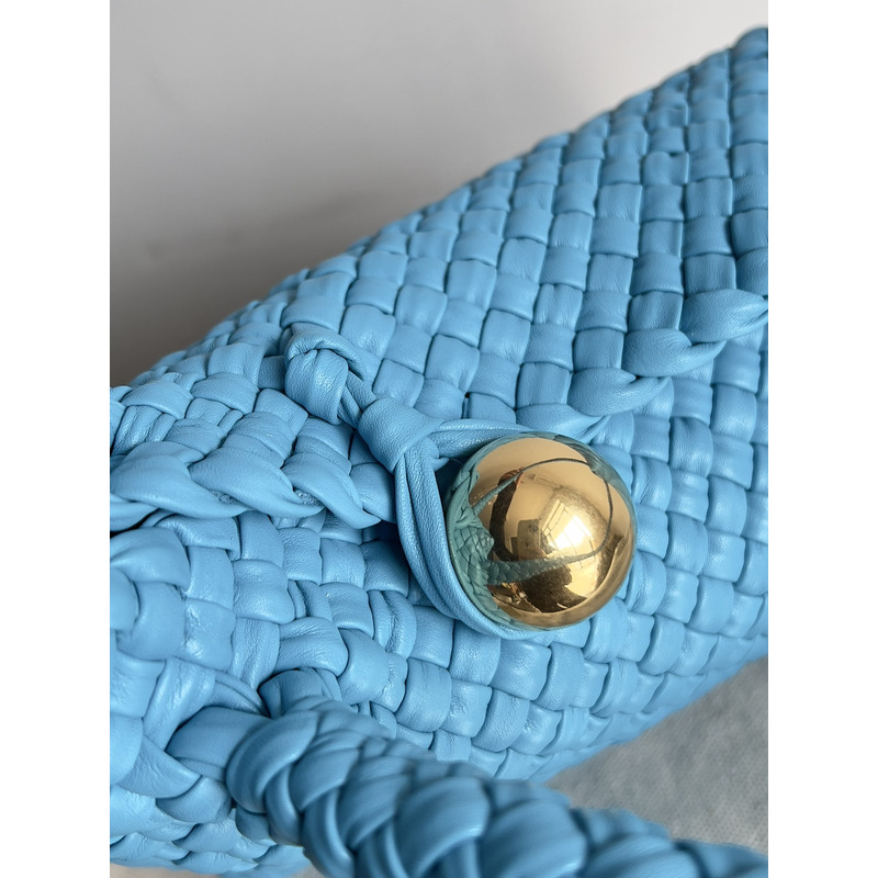 Bottega Veneta Shoulder Bag In Intreccio Leather With Sculptural Sphere Detail Blue