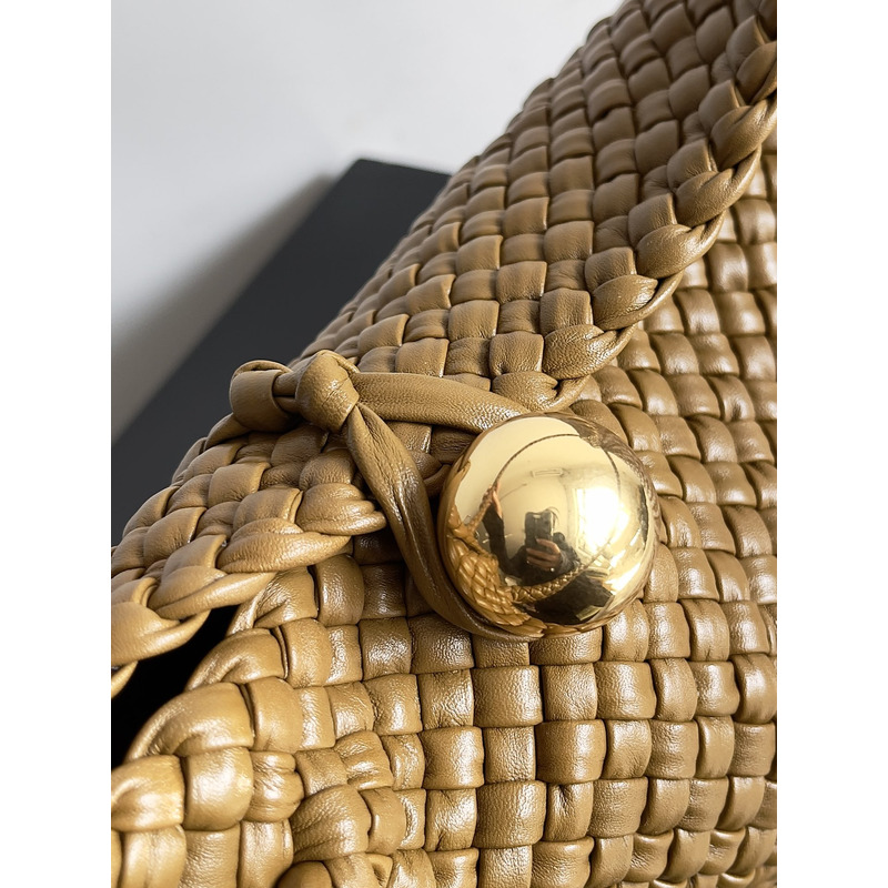 Bottega Veneta Shoulder Bag In Intreccio Leather With Sculptural Sphere Detail Brown