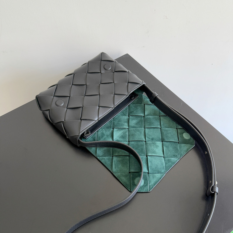 Bottega Veneta Small Diago Intreccio Smooth Leather Cross-Body Bag Black