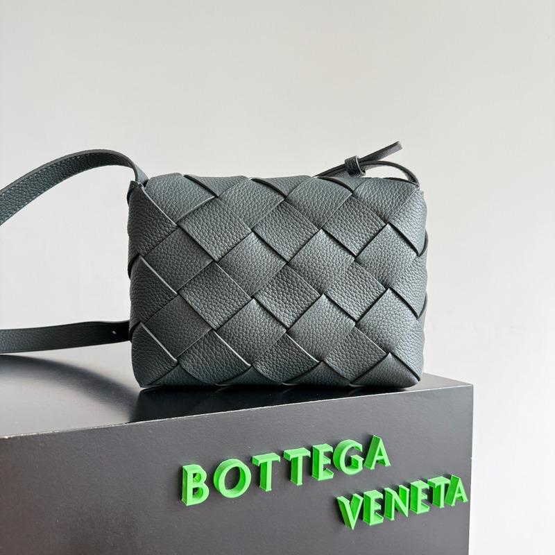 Bottega Veneta Small Diago Intreccio Smooth Leather Cross-Body Bag Greyish Green