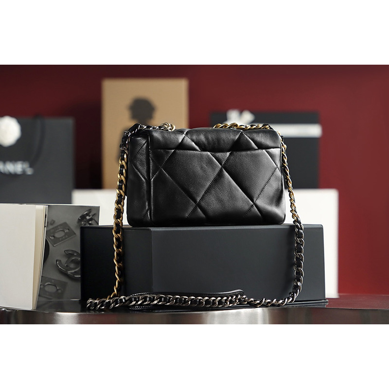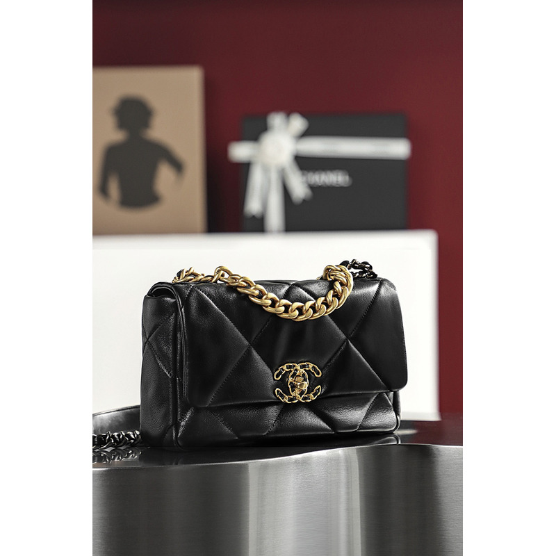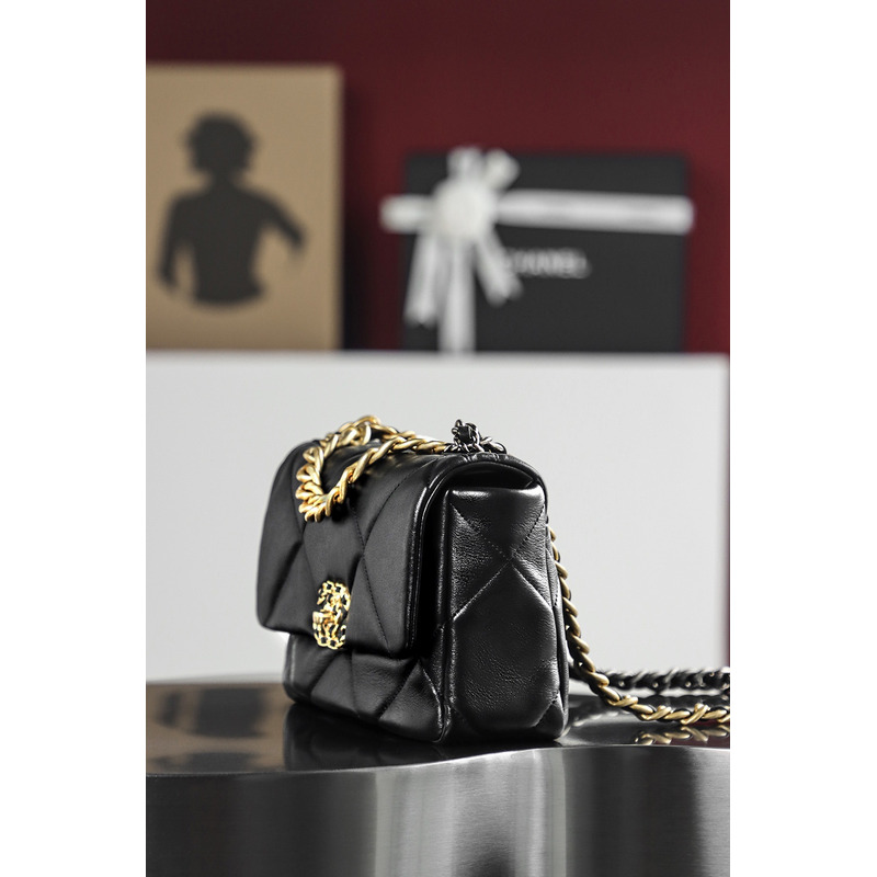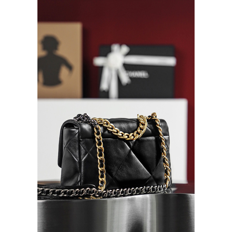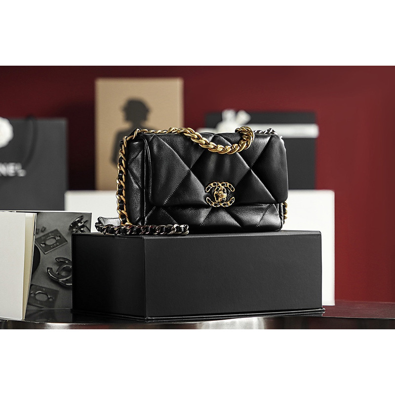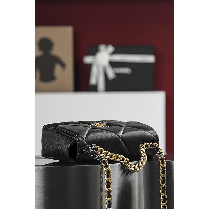 Chanel 19 Handbag Lambskin & 24K Gold-Tone In Black