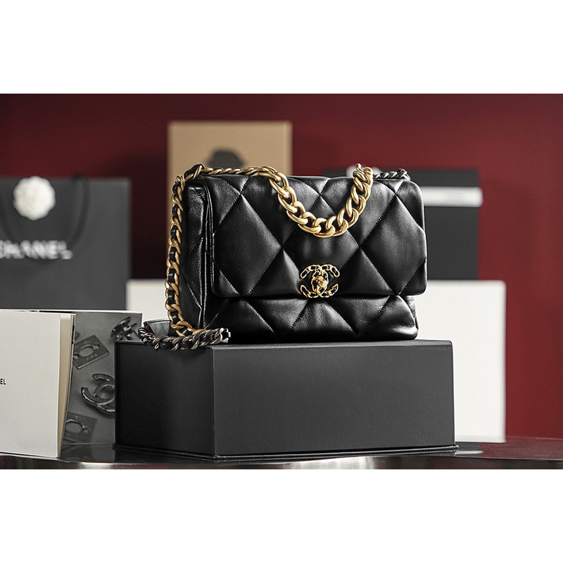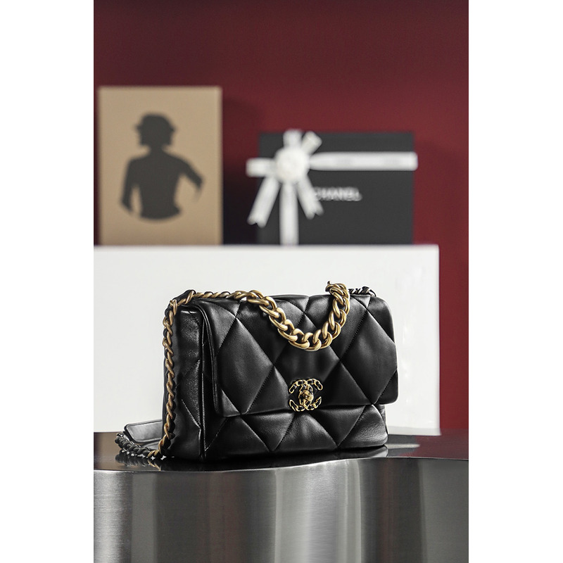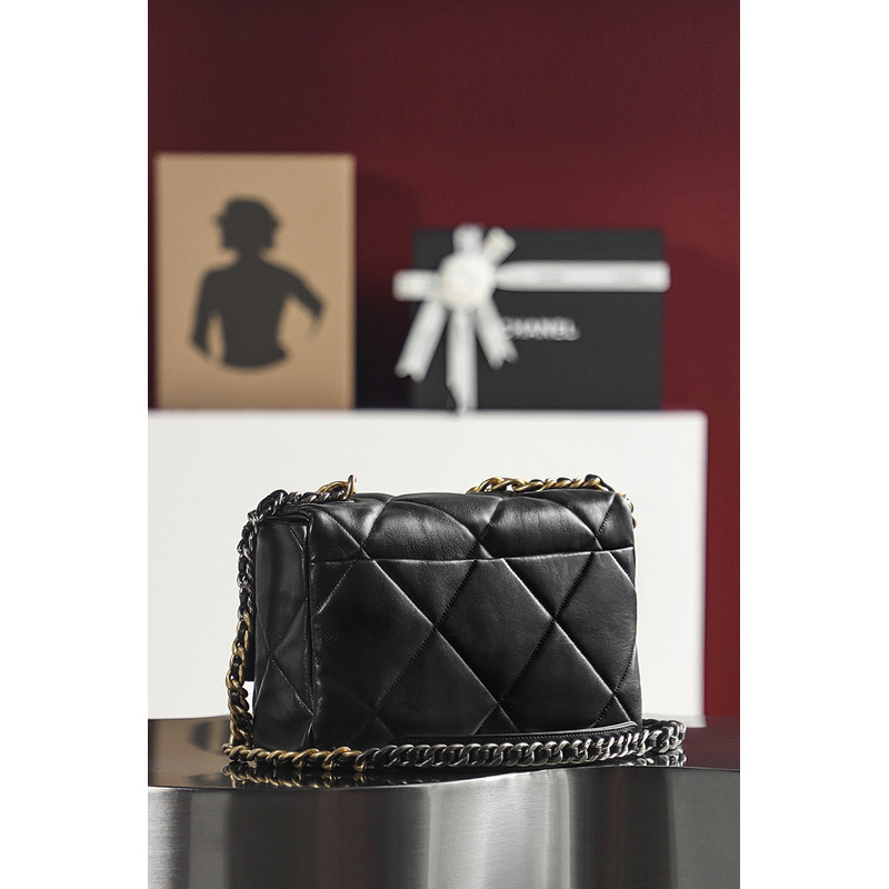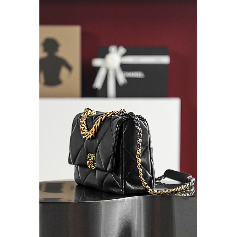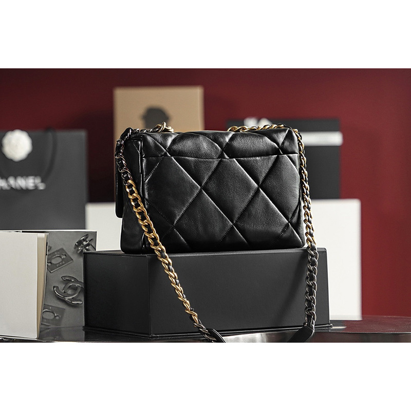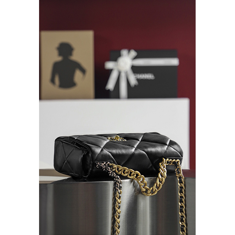Chanel 19 Handbag Large Lambskin & 24K Gold-Tone In Black