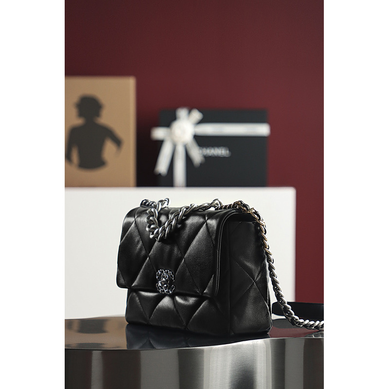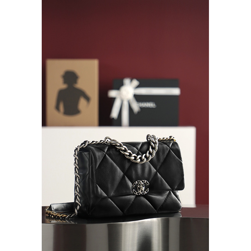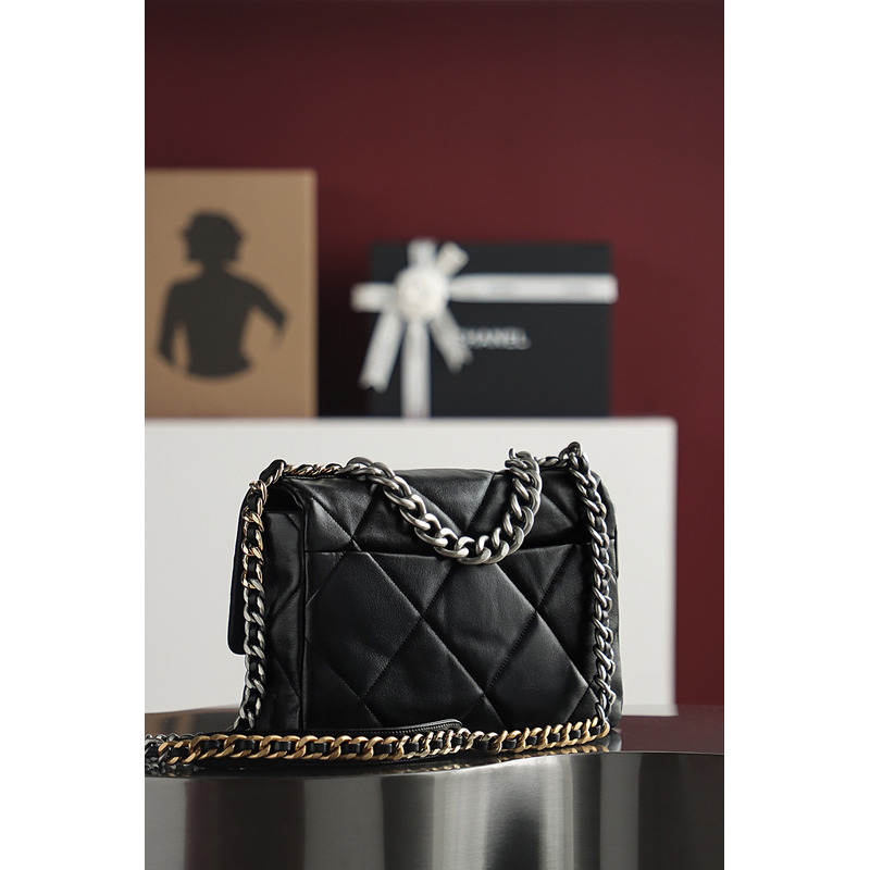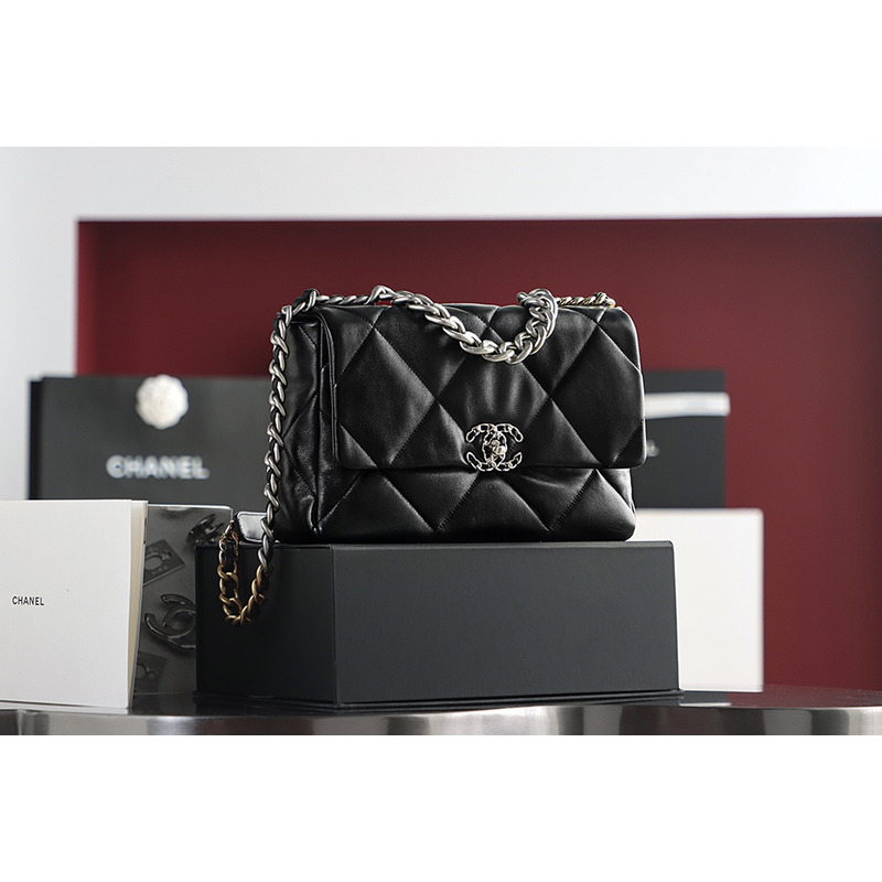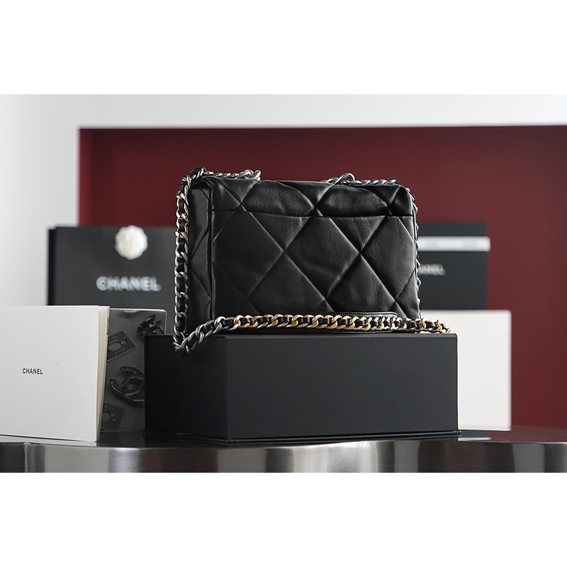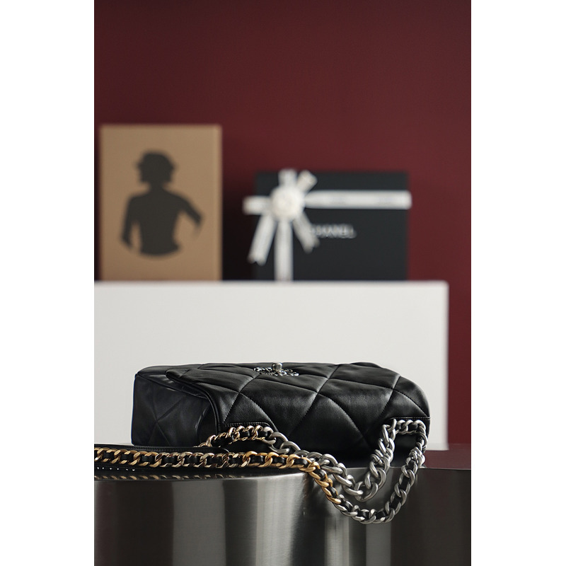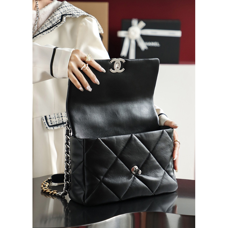 Chanel 19 Handbag Large Lambskin & 24K Silver-Tone In Black