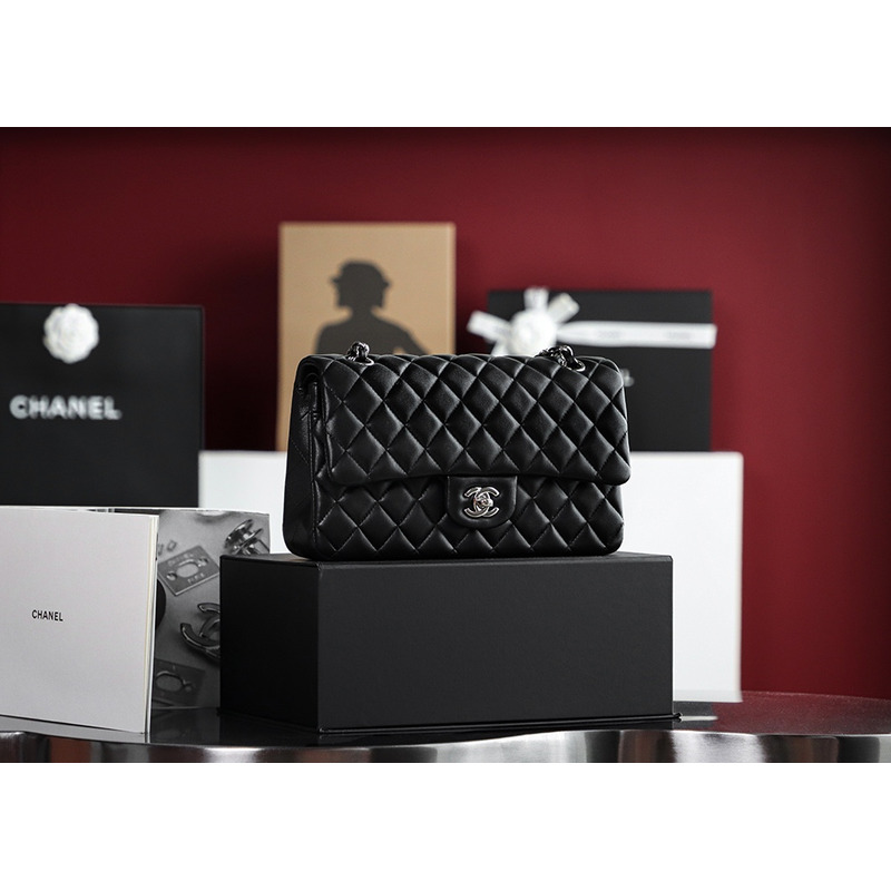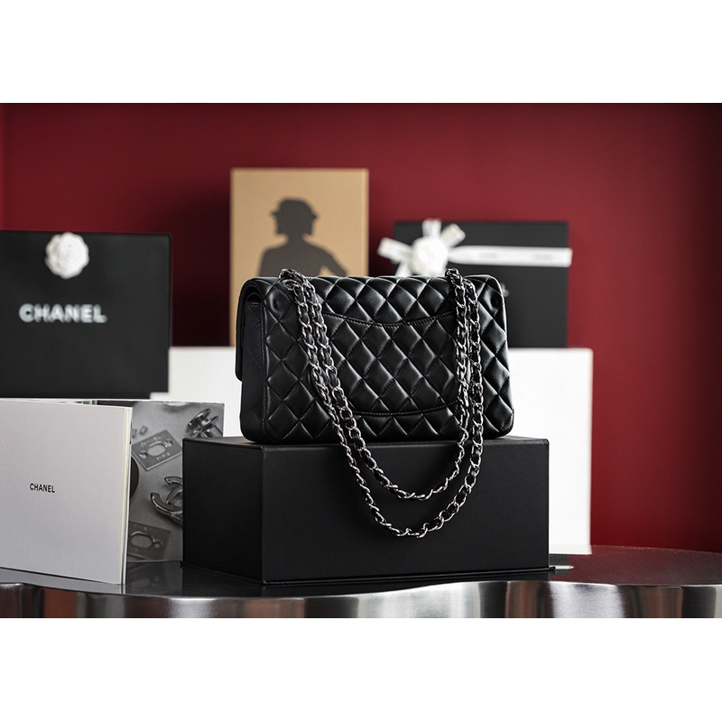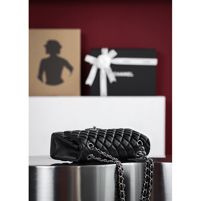 Chanel 19 Handbag Large Quilted Lambskin & 24K Silver-Tone In Black
