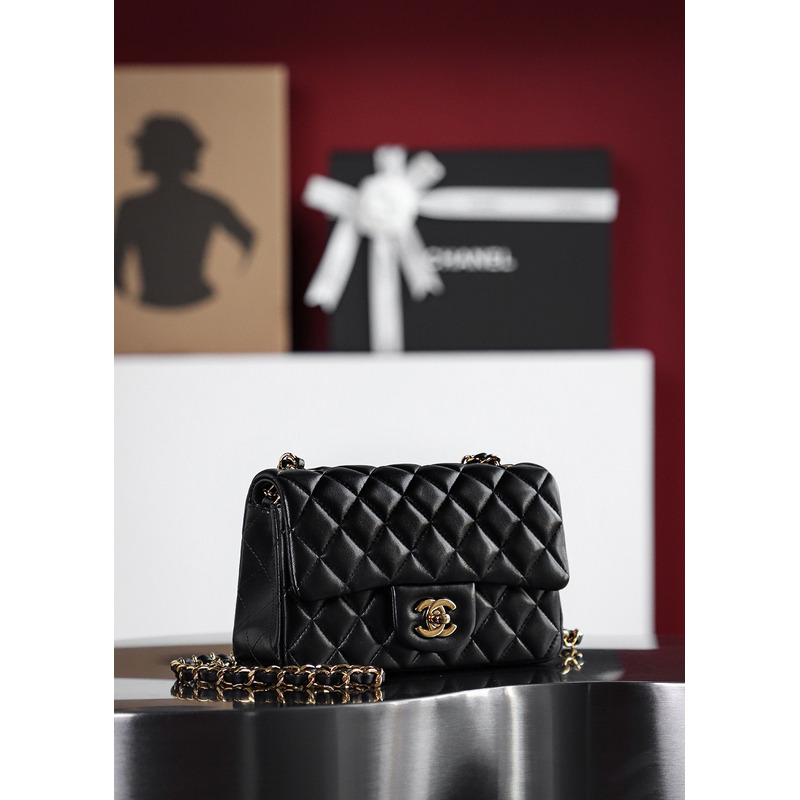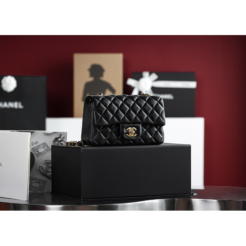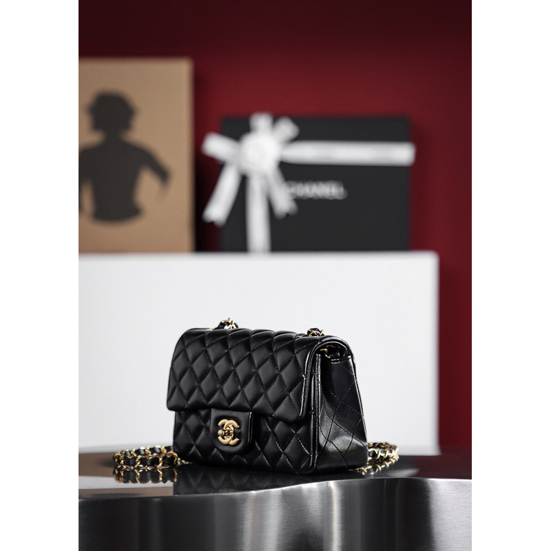 Chanel 19 Handbag Small Quilted Lambskin & 24K Gold-Tone In Black