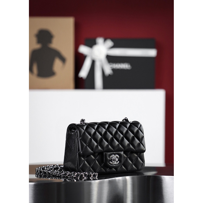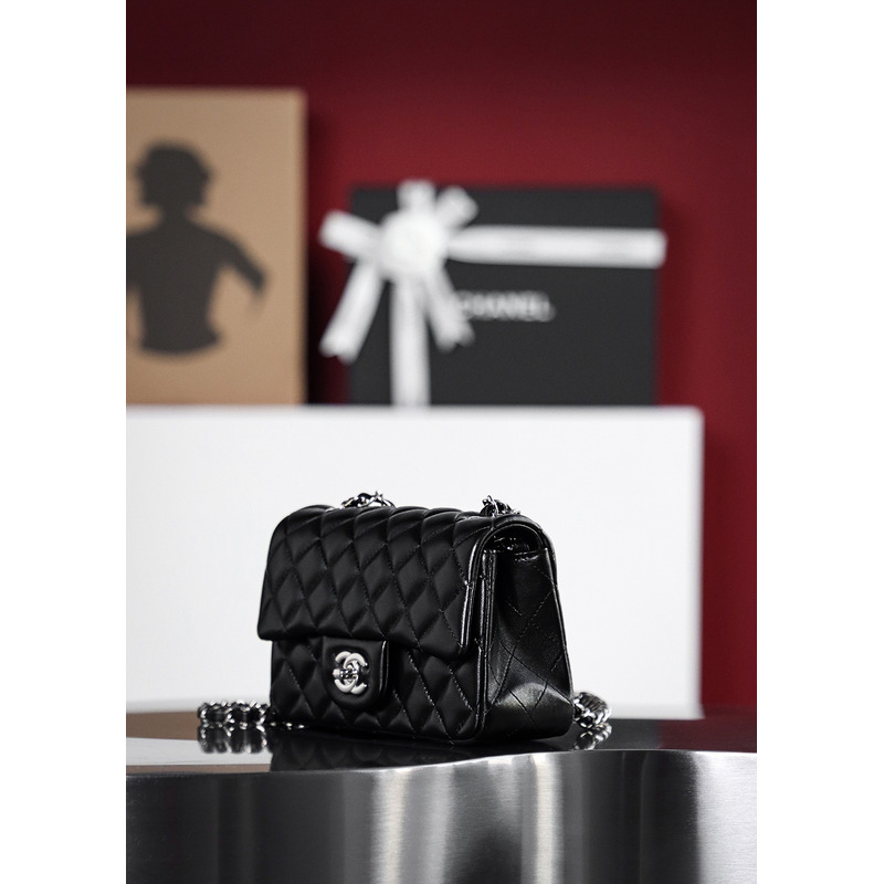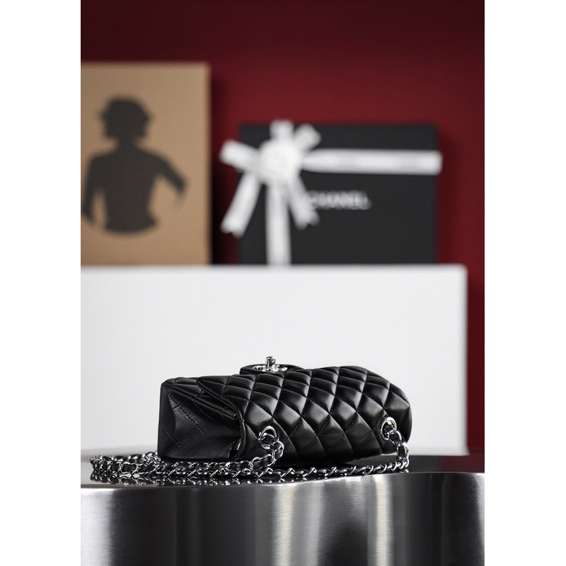 Chanel 19 Handbag Small Quilted Lambskin & 24K Silver-Tone In Black