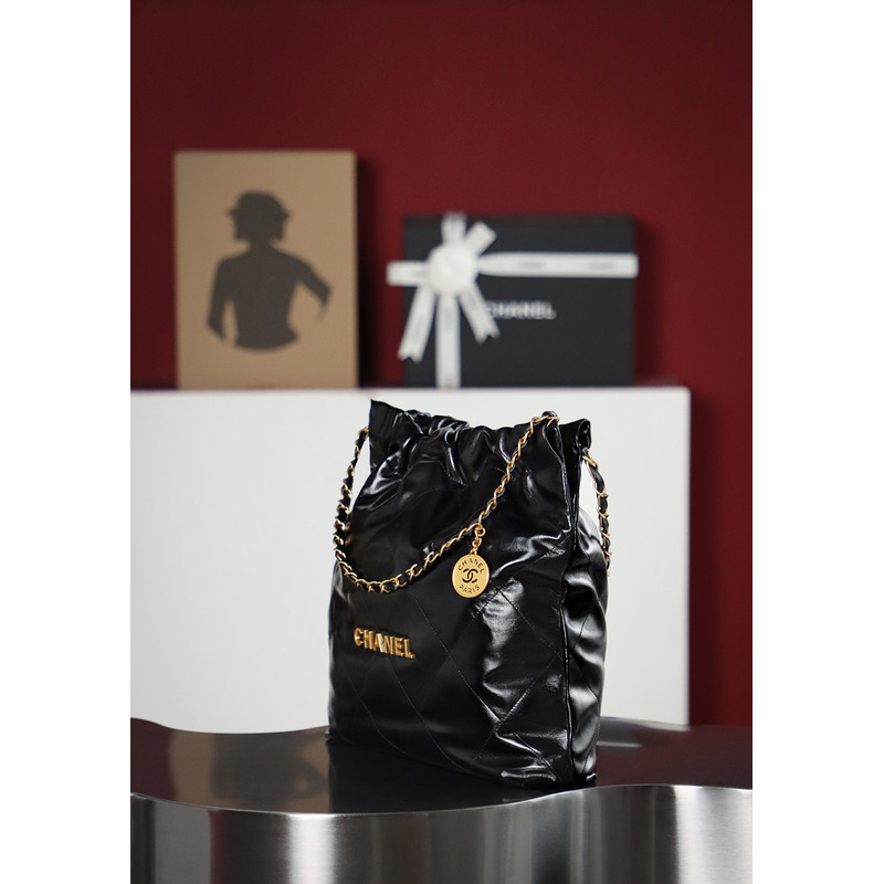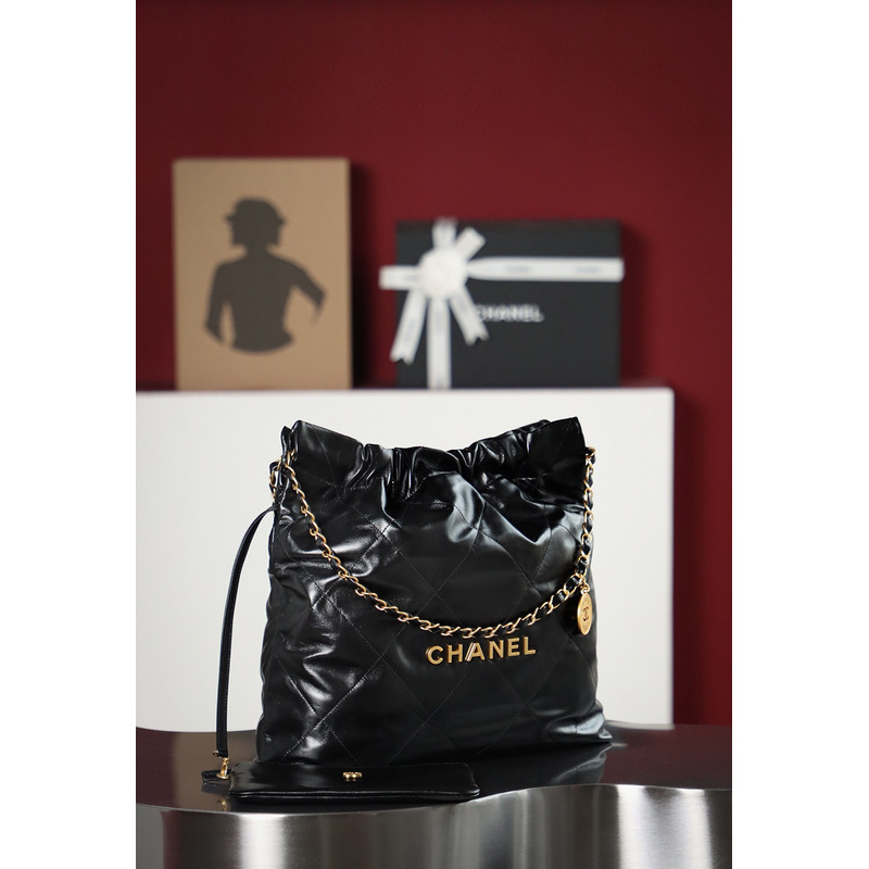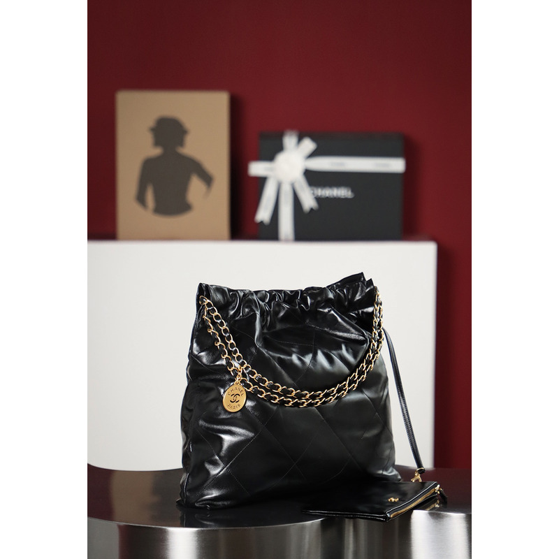 Chanel 22 Handbag 24K Gold-Tone Metal In Black