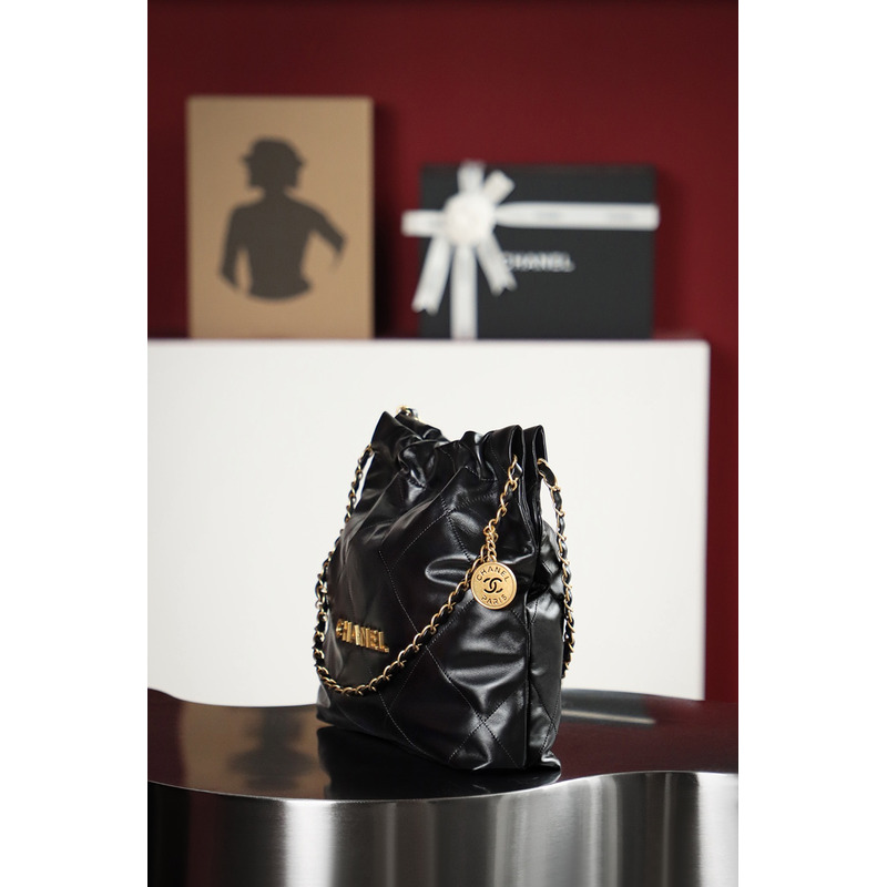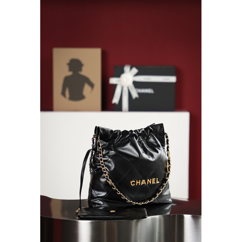 Chanel 22 Handbag Shiny Calfskin & 24K Gold-Tone Metal In Black
