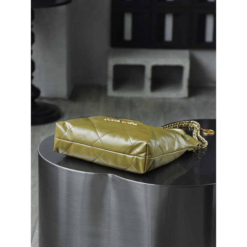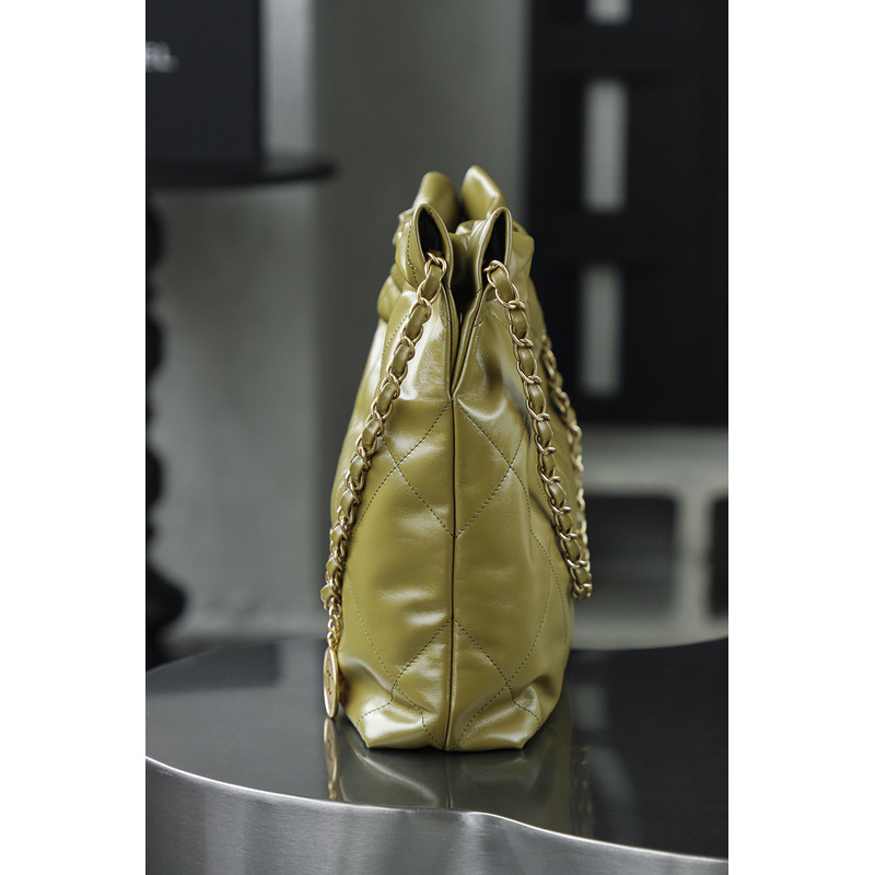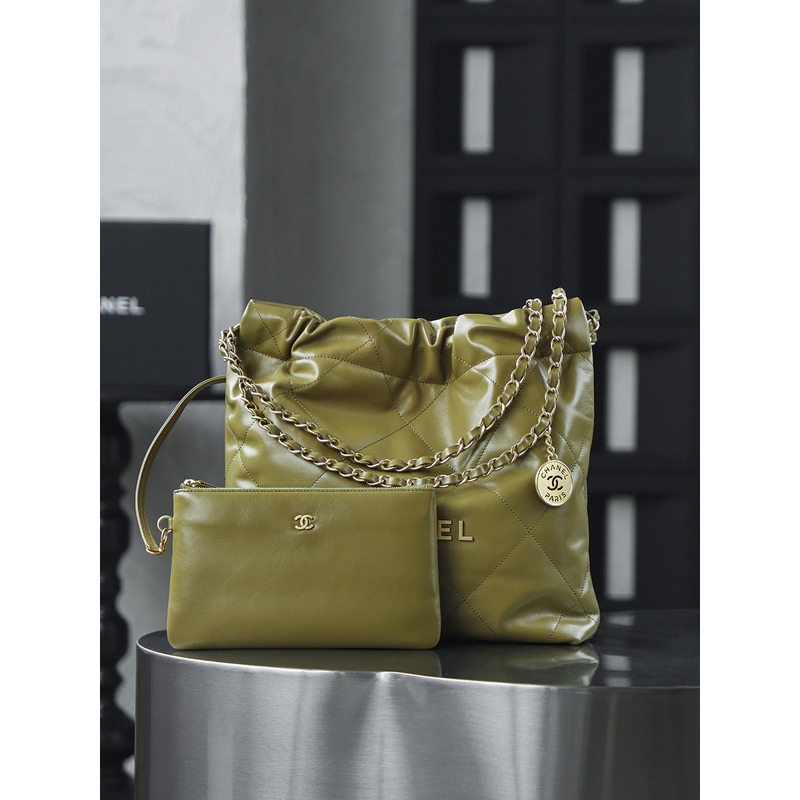 Chanel 22 Handbag Shiny Calfskin & 24K Gold-Tone Metal Olive Green