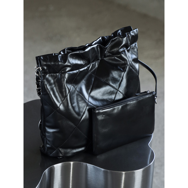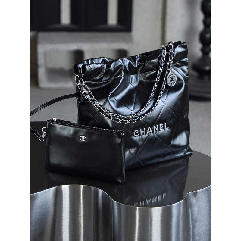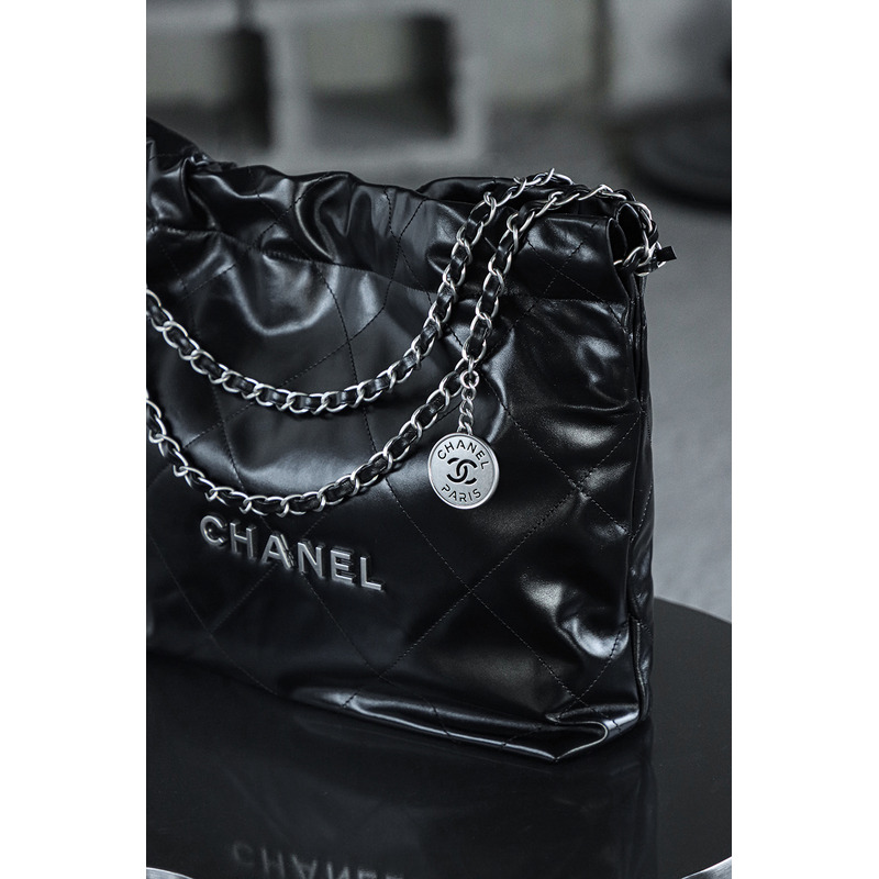 Chanel 22 Handbag Shiny Calfskin & 24K Silver-Tone Metal Black