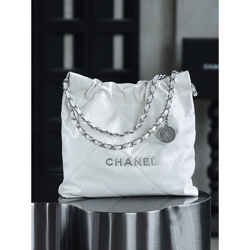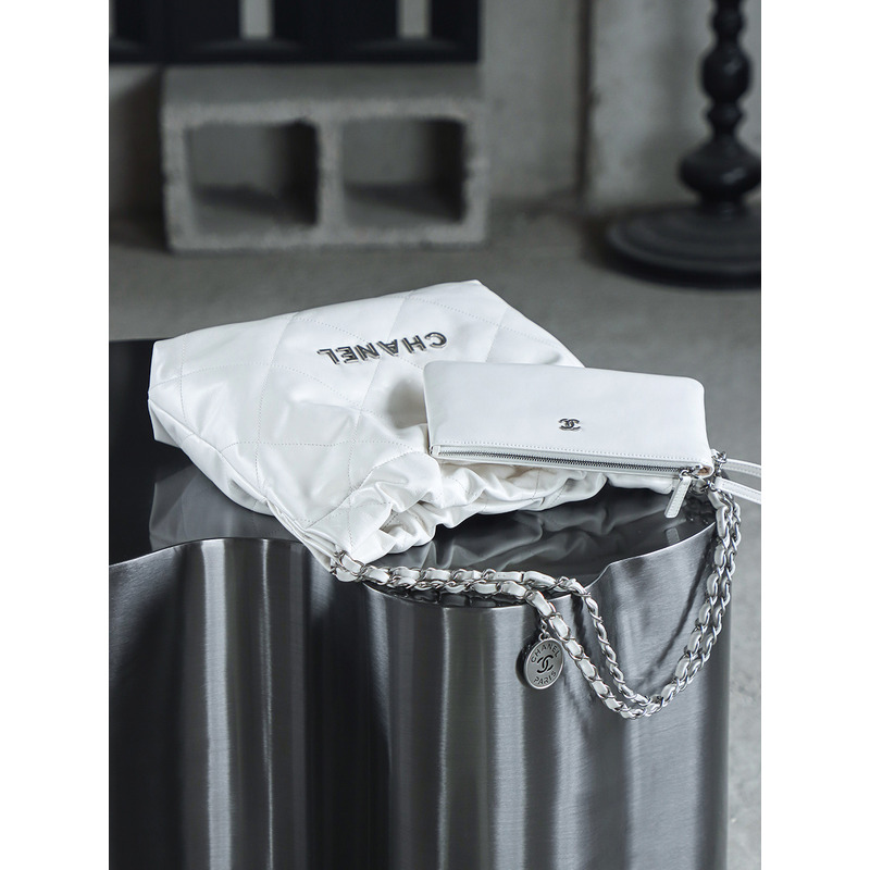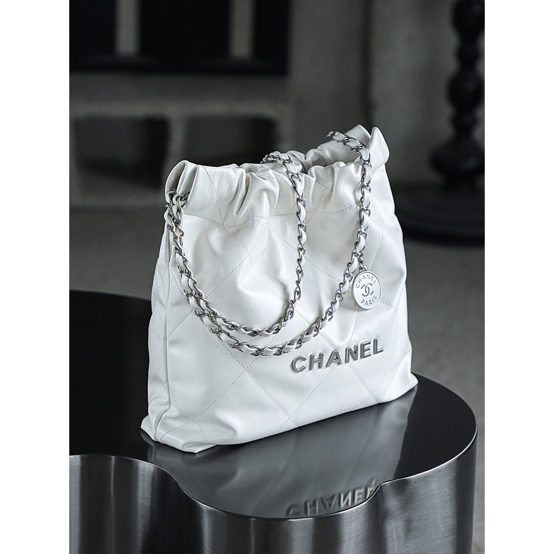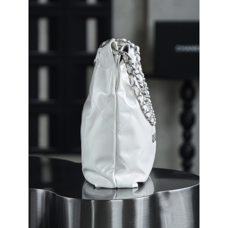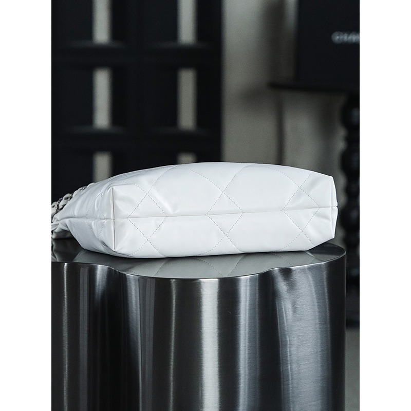 Chanel 22 Handbag Shiny Calfskin & 24K Silver-Tone Metal White