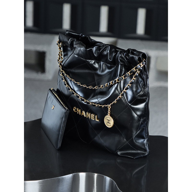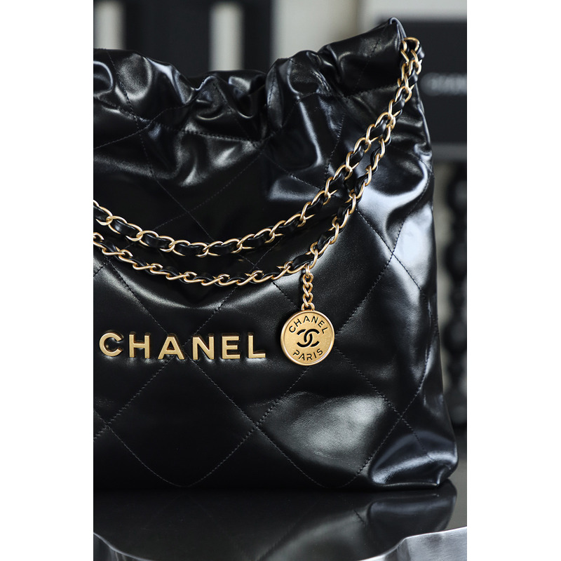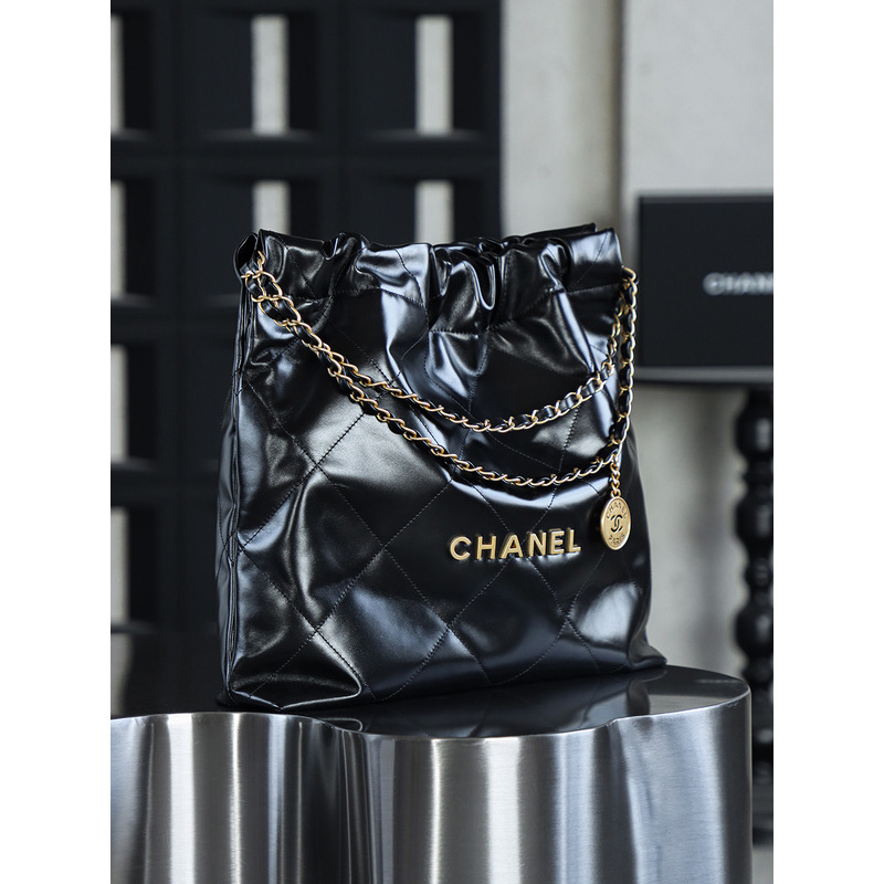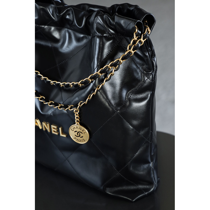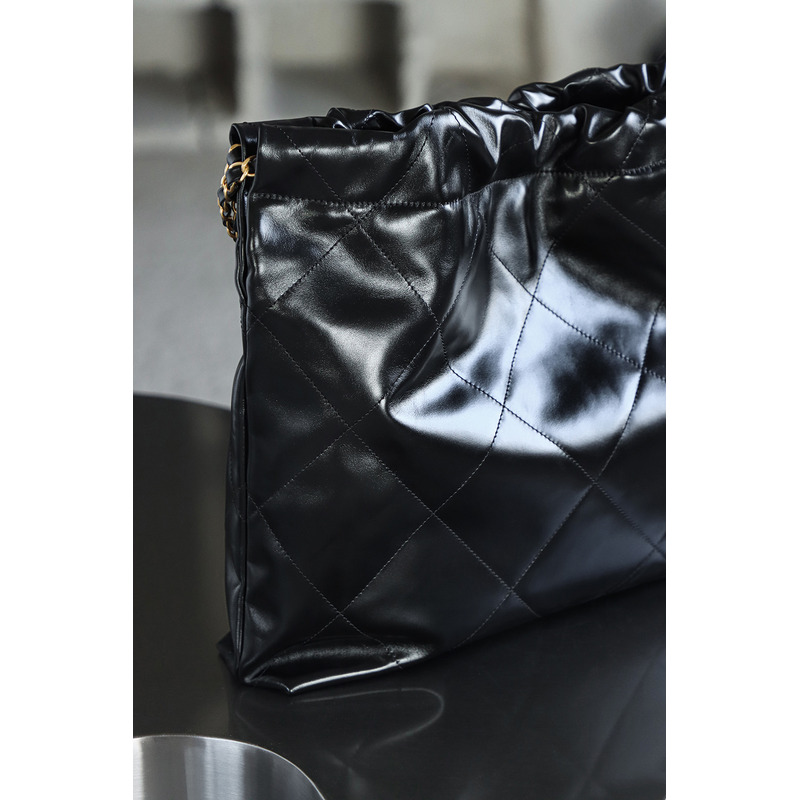 Chanel 22 Large Handbag Shiny Calfskin & 24K Gold-Tone Metal Black