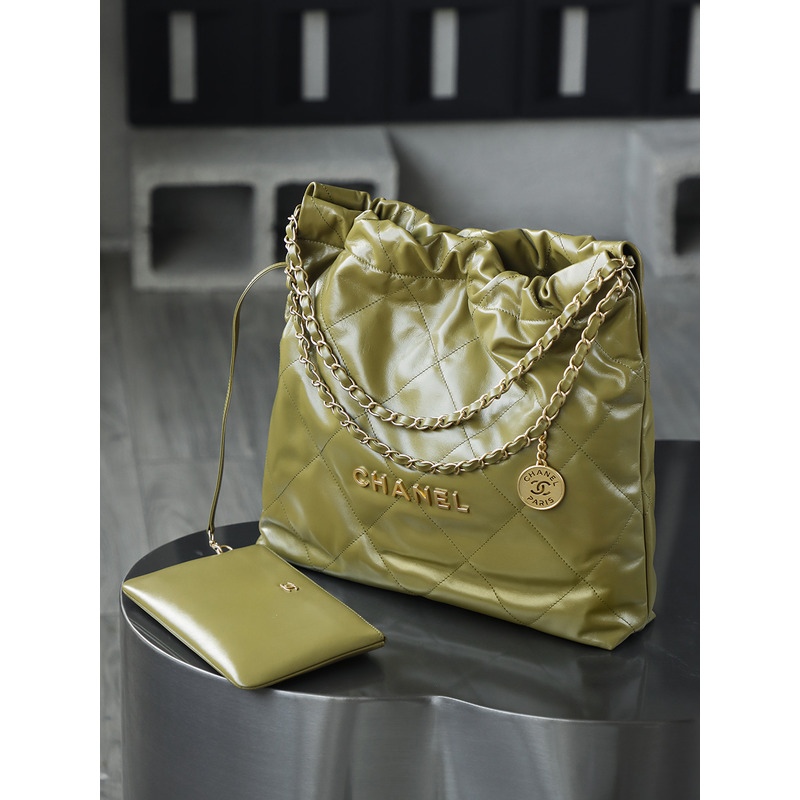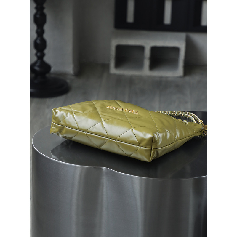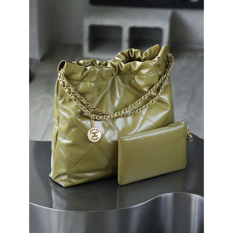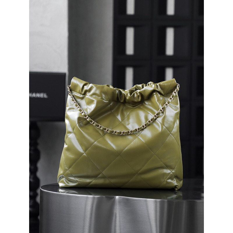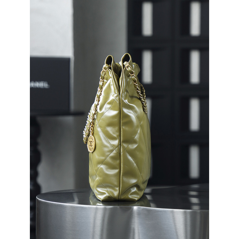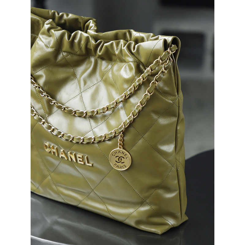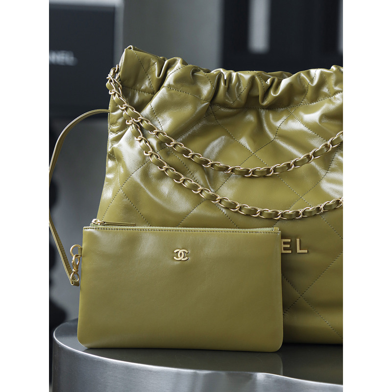 Chanel 22 Large Handbag Shiny Calfskin & 24K Gold-Tone Metal Olive Green