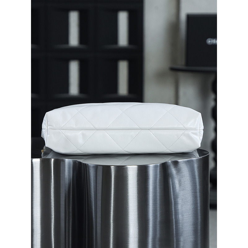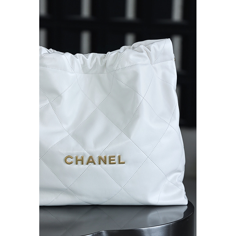Chanel 22 Large Handbag Shiny Calfskin & 24K Gold-Tone Metal White