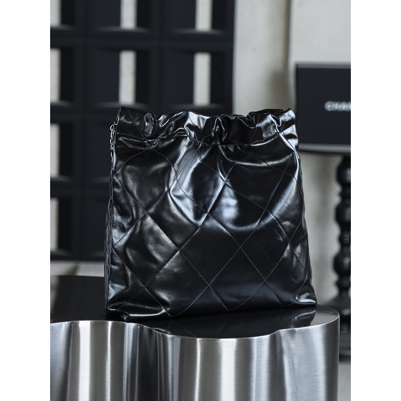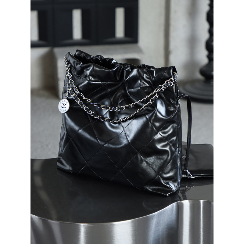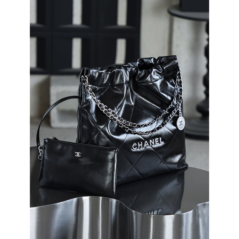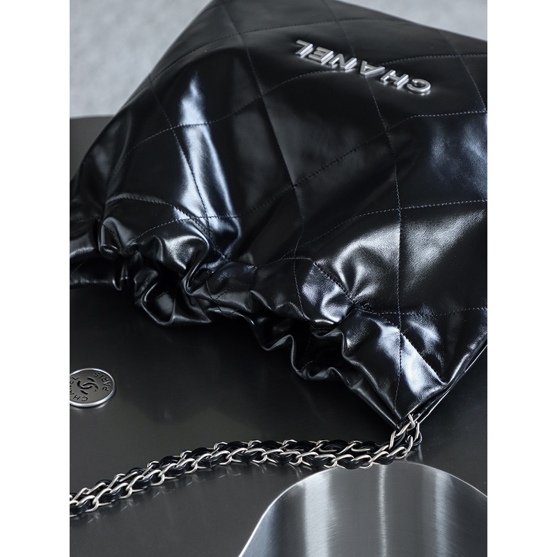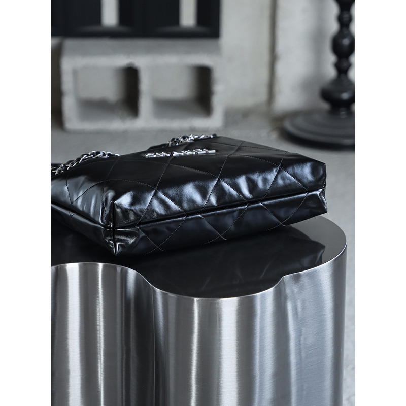 Chanel 22 Large Handbag Shiny Calfskin & 24K Silver-Tone Metal Black